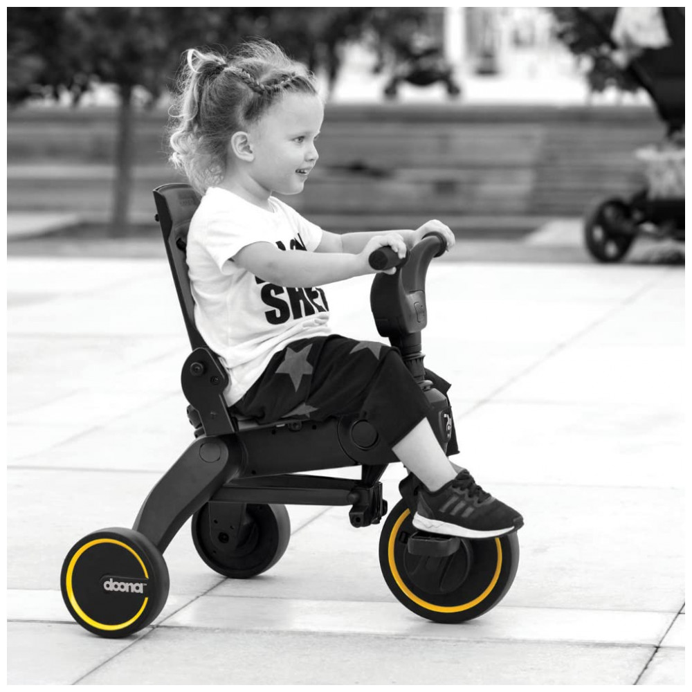 Triciclo Doona confortável, resistente e O Doona Liki Trike inclui ombreiras macias e duráveis, apoio de braço acolchoado, arnês de 5 pontos e alças de pedal.