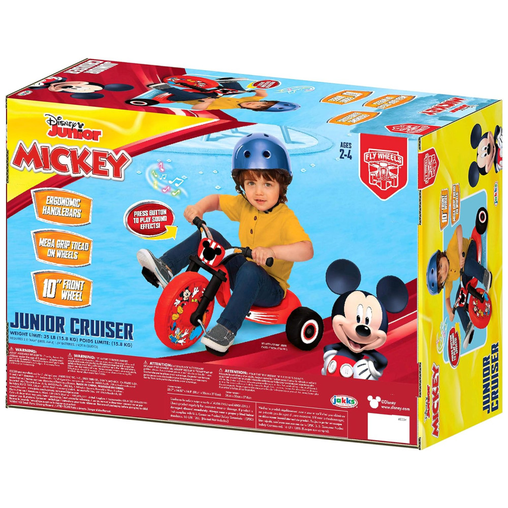 Efeitos Sonoros Divertidos do Mickey Mouse: Há um botão no guidão que ativa efeitos sonoros divertidos e a música tema do Mickey Mouse, proporcionando uma experiência mais emocionante e envolvente para a criança. Isso requer duas pilhas AA não incluídas.