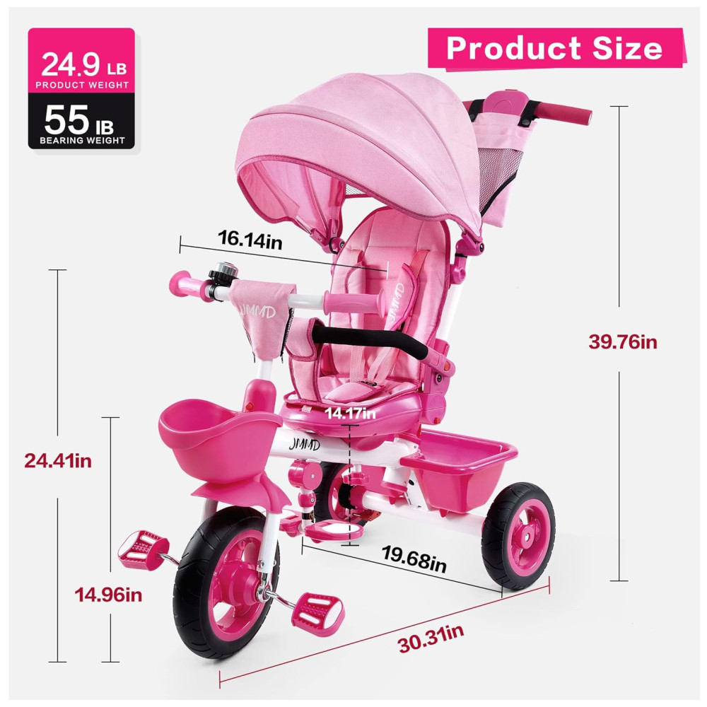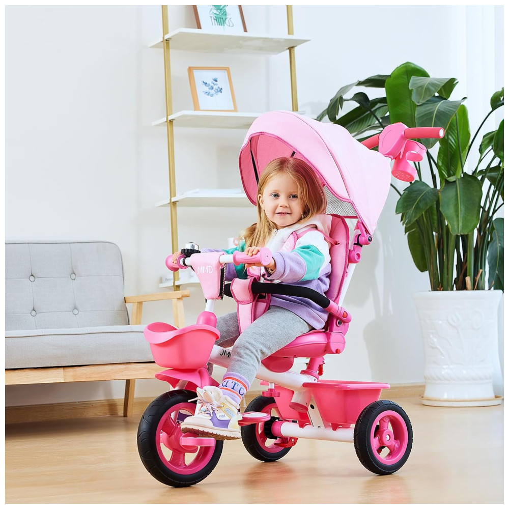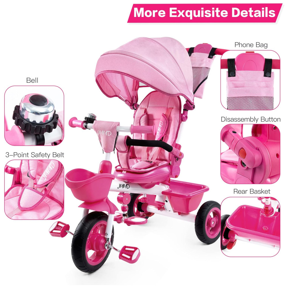 Triciclo Infantil para Passeio com Assento Ajustável 6 Estágios Idade Recomendada 1 a 6 Anos BOOWAY Rosa