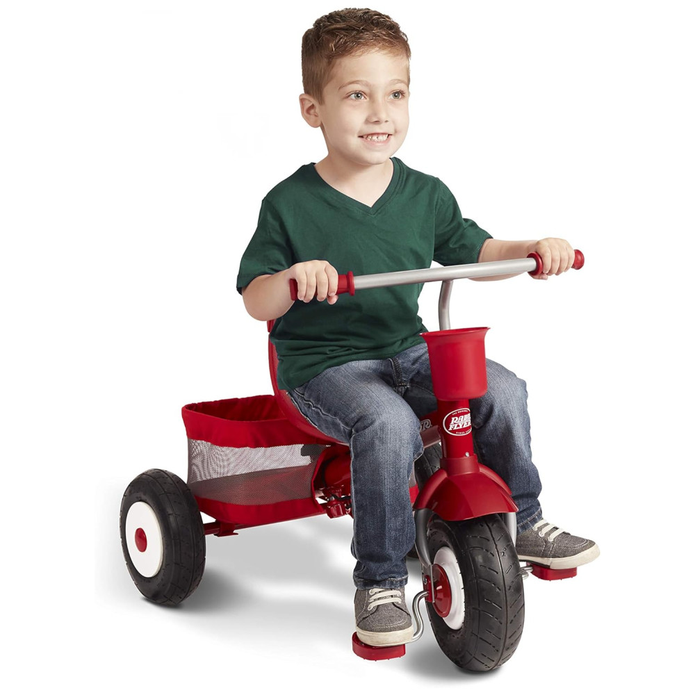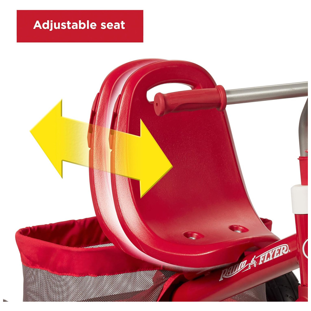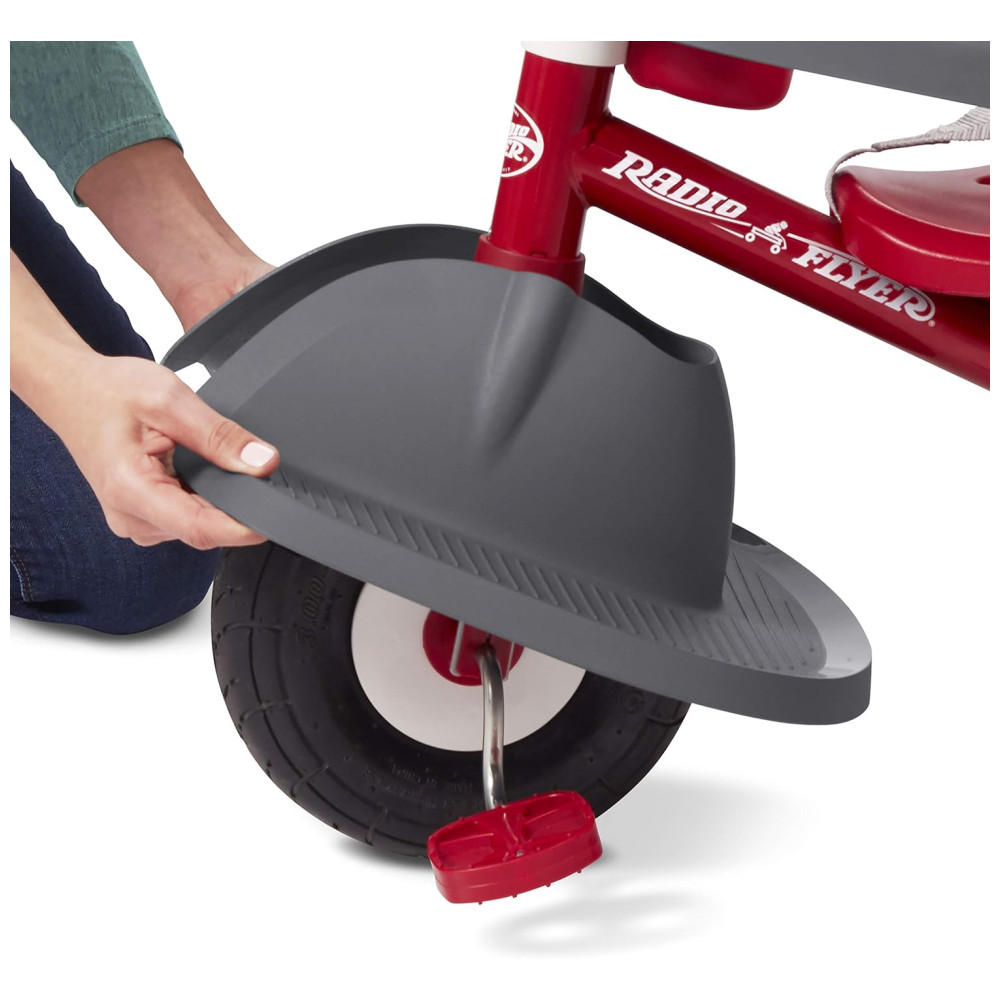 Compatível com idades de 9 a 59 meses, corpo do triciclo, guidão de empurrar, dossel e ferragens inclusos, UPC 042385113845. Projetado para uso diário em casa, parque ou vizinhança, com foco em durabilidade e versatilidade técnica. Certificado B Corp pela Radio Flyer, atende padrões de desempenho social e ambiental verificados.