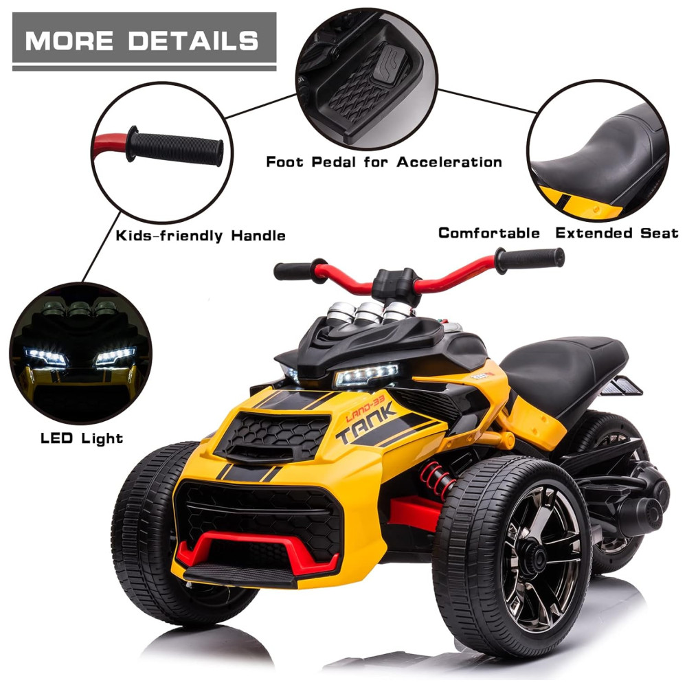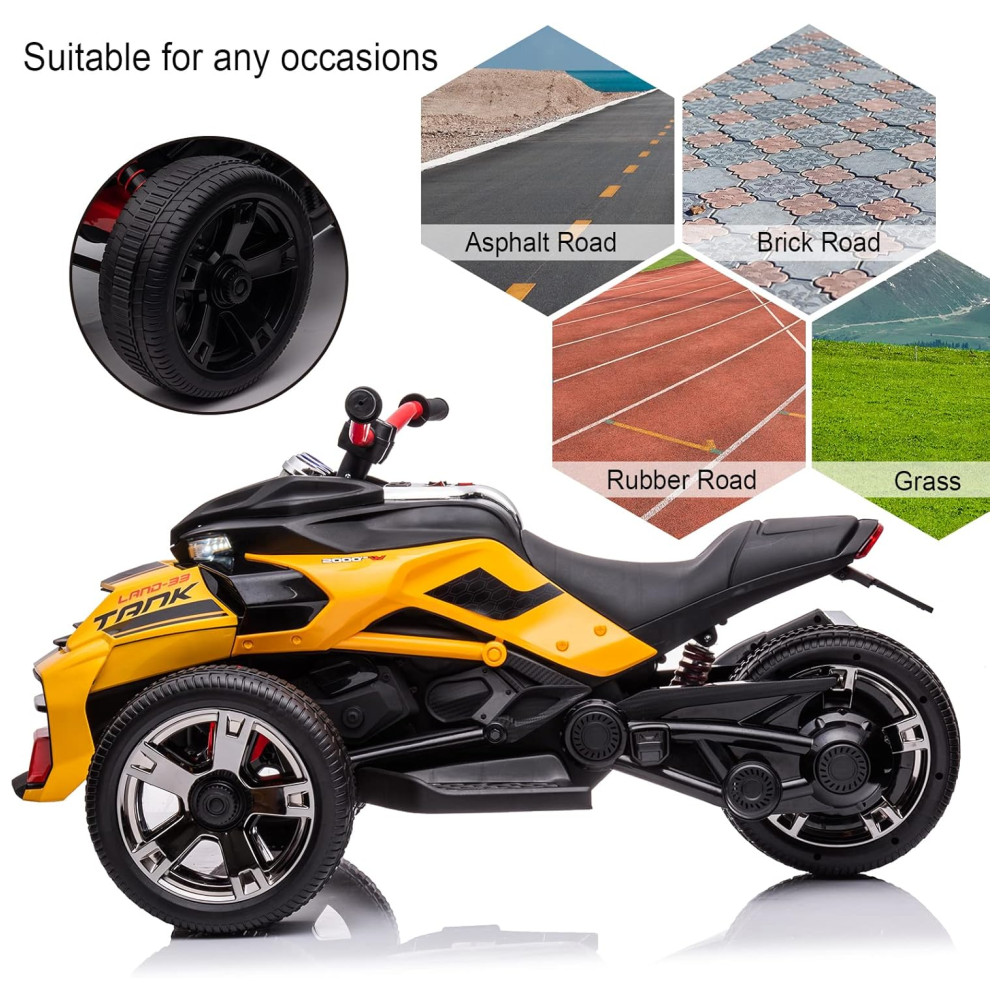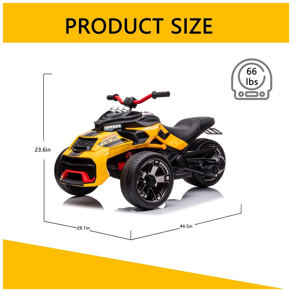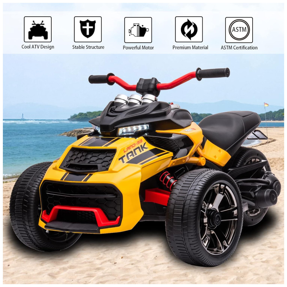 Triciclo Moto Elétrica Infantil 24V ATV com 3 Rodas para Meninos e Meninas LUIBAS Amarelo