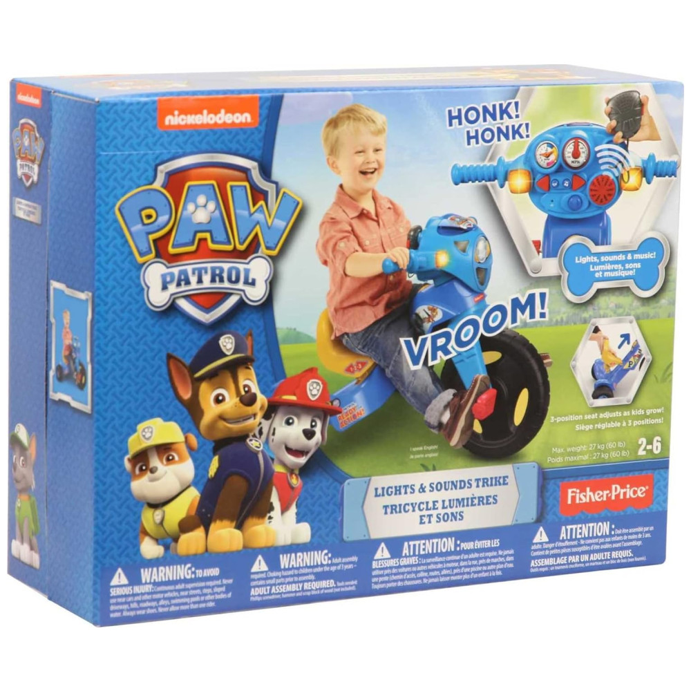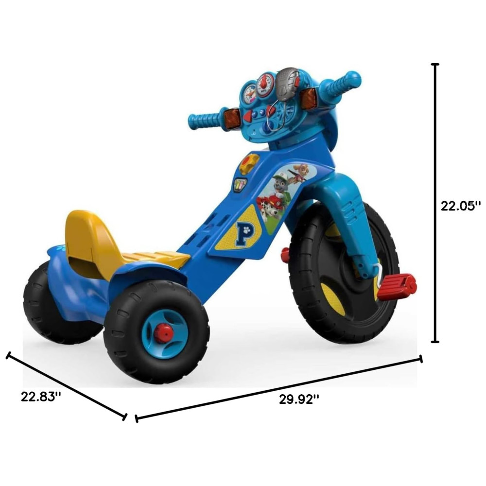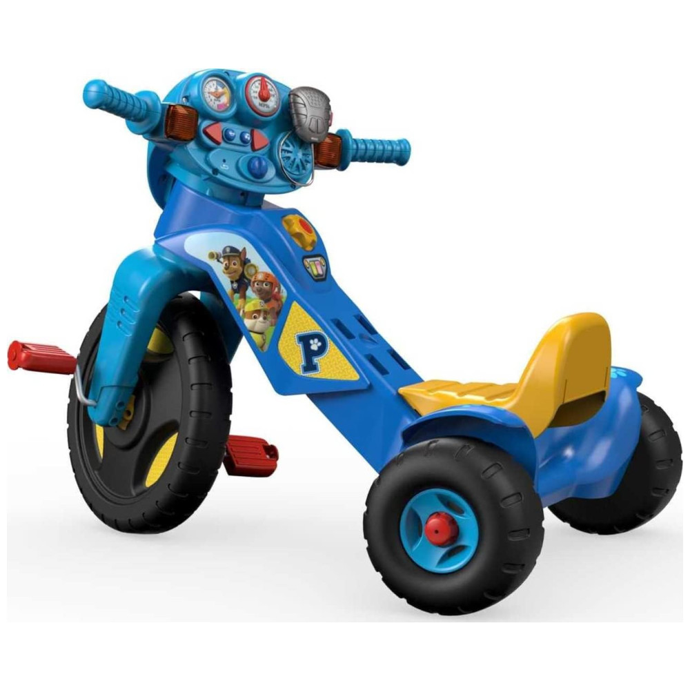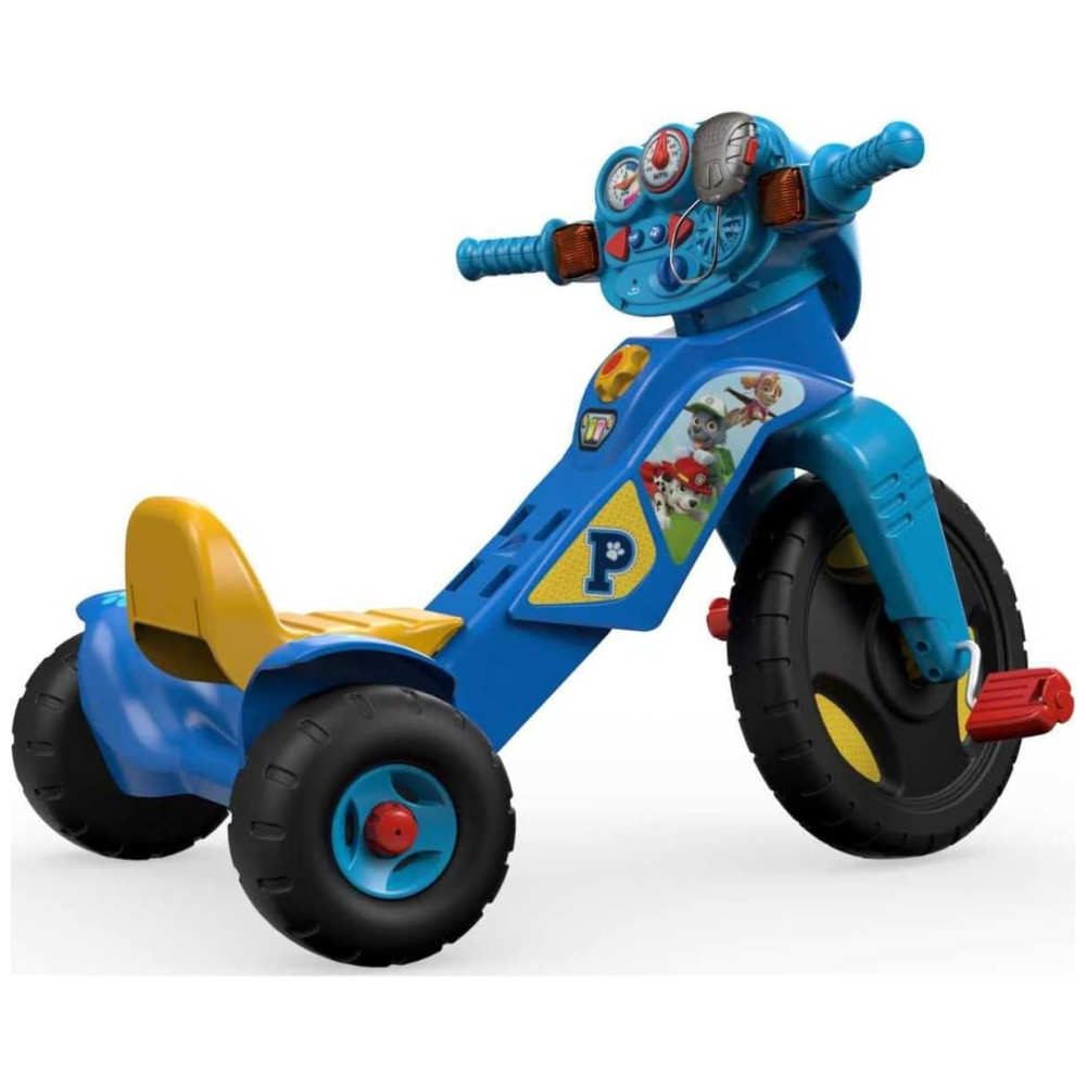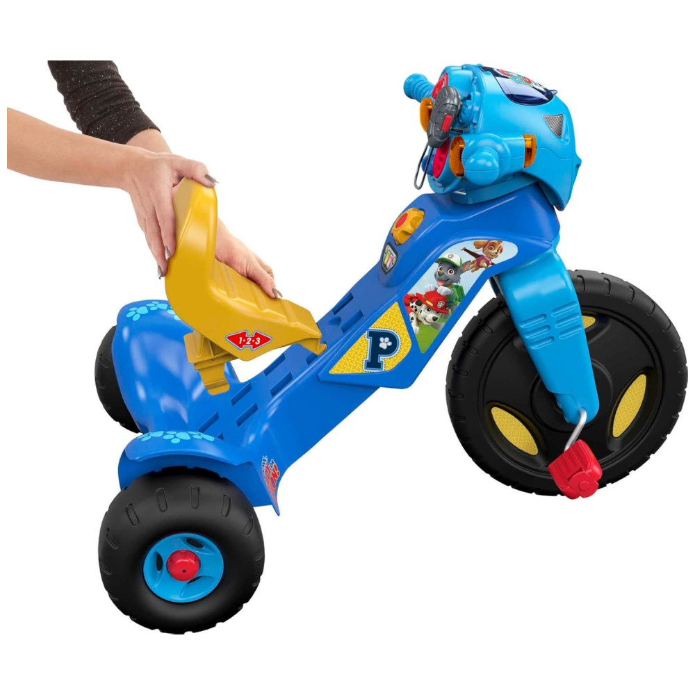 O FisherPrice PAW Patrol Lights Sounds Trike é um triciclo infantil com um design divertido e adequado para crianças. Possui uma roda dianteira grande que ajuda as crianças a pedalar mais rápido, uma ampla distância entre eixos para maior estabilidade, guidão fácil de segurar, pedais antiderrapantes e um assento ajustável em três posições que cresce com as crianças. Além disso, o triciclo vem com luzes, música e um walkie talkie que reproduz sons, permitindo que as crianças embarquem em aventuras imaginativas.