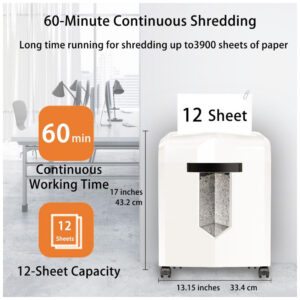 O Triturador Bonsaii Micro Cut é ideal para uso contínuo de 60 minutos, utilizando tecnologia avançada de resfriamento e corte. Com capacidade de triturar até 12 folhas por vez, chegando a 3900 folhas no total, além de cartões de crédito, grampos, clipes de papel e CDs. O sistema de segurança MicroCut de alta qualidade reduz o papel para partículas de 5x12mm, garantindo o nível de segurança P4 para proteção da privacidade pessoal. Com funcionamento silencioso de 60dB, é adequado para escritórios. Possui sistema à prova de entupimentos para proteção contra sobrecarga e inicia automaticamente ao inserir papel. Design personalizado com 4 rodízios universais para fácil mobilidade e janela de visualização do cesto de lixo. Testado em qualidade antes do envio. Evite usar aerossóis próximos ao triturador e não triture itens metálicos. Acompanha manual e vídeo instrucional para melhor utilização.