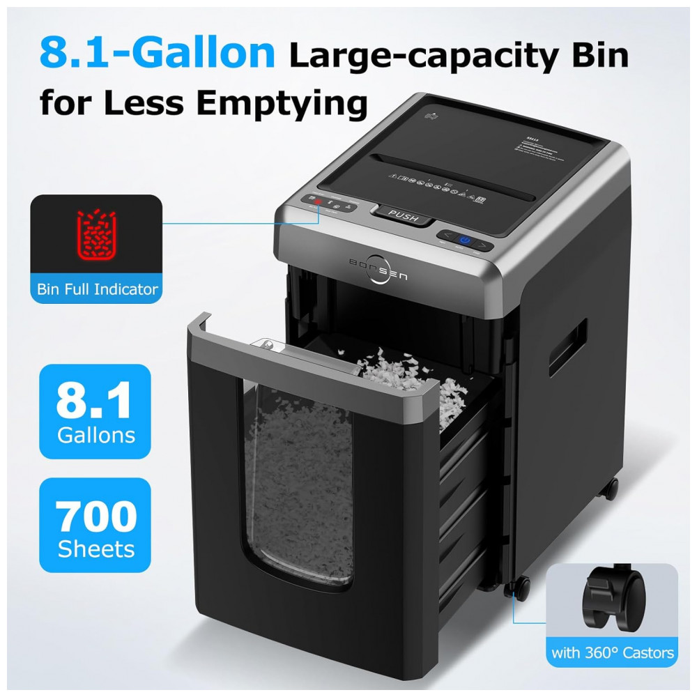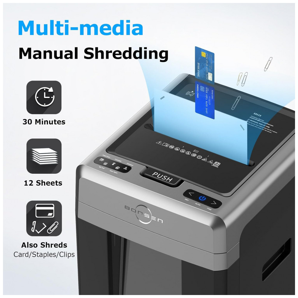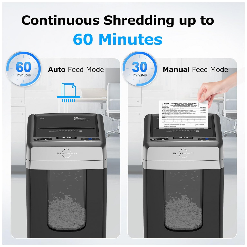 Triturador de Papel Automático BONSEN 300 Folhas Trituração Contínua 60 Minutos para Uso Comercial Intenso 30 Minutos Manual Corte Micro