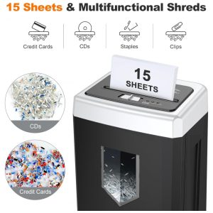 Triturador de Papel Bonsaii 15 Folhas para Escritório 40 Minutos de Uso Contínuo Alta Segurança P4 Capacidade de 189 litros