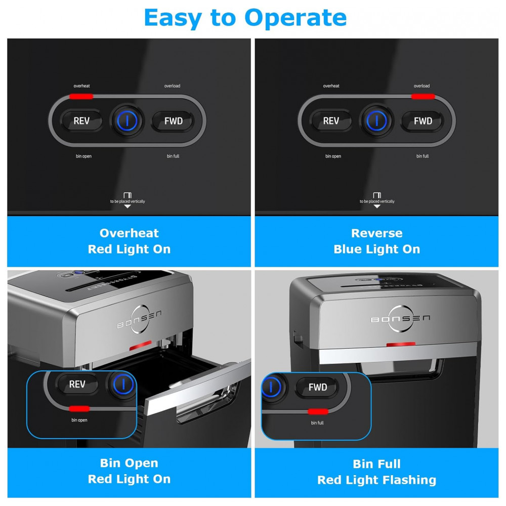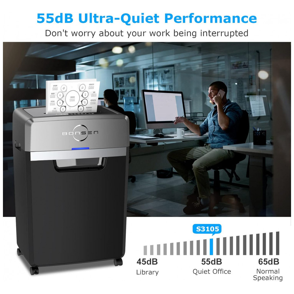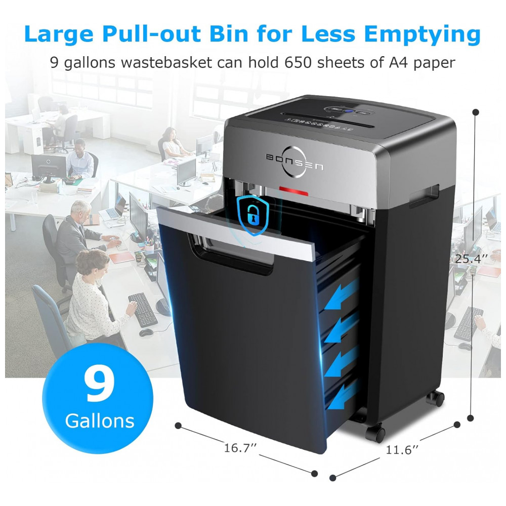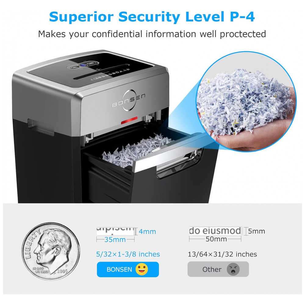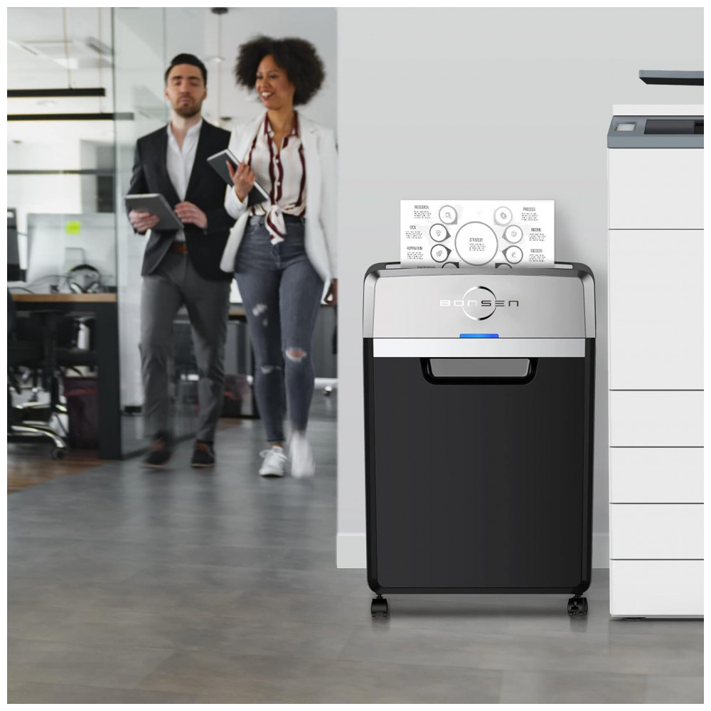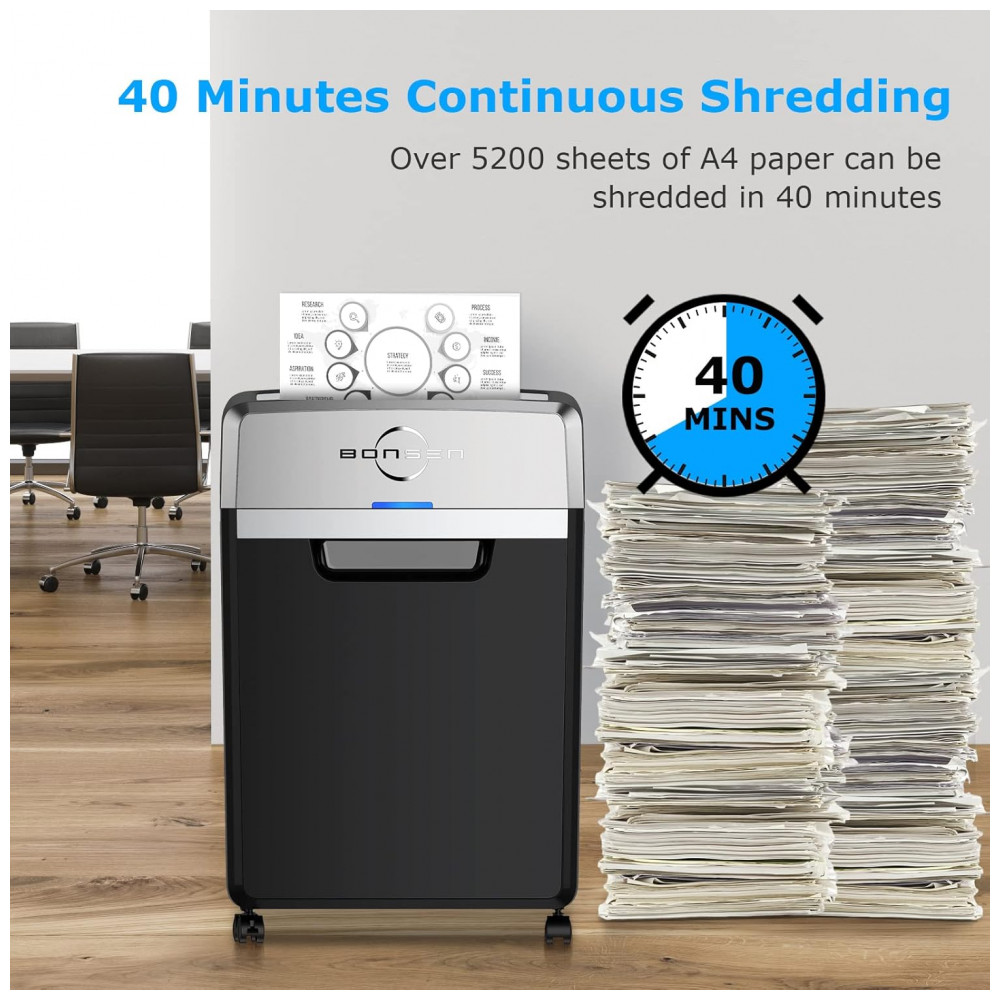Triturador de Papel Pesada BONSEN Corte Cruzado de 24 Folhas Tempo de Funcionamento Contínuo de 40 Minutos Fragmentadora de Grau Comercial