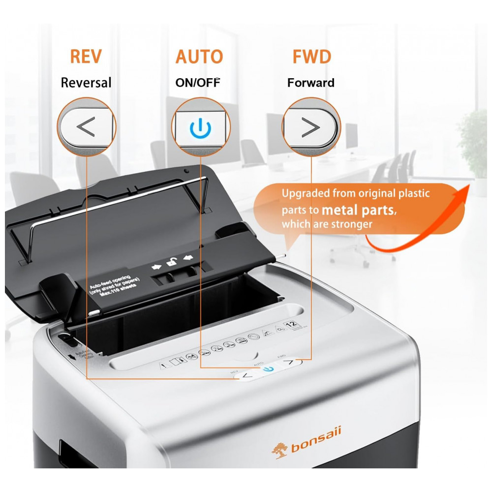 Trituradora de Papel Bonsaii HeavyDuty para Casa e Escritório com Alimentação Automática de 110 Folhas Corte Micro Nível de Segurança P4