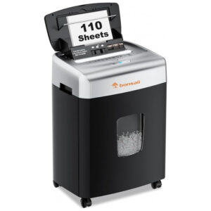 A Trituradora de Papel Bonsaii é perfeita para uso doméstico e profissional, oferecendo capacidade de triturar automaticamente até 110 folhas e manualmente até 12 folhas, incluindo correspondências, cartões e grampos. Com modo contínuo de 30 minutos de operação, a fragmentação microcorte de nível de segurança P4 garante privacidade, transformando o papel em partículas de 4mm x 12mm. O amplo cesto de 23 litros reduz a frequência de esvaziamento, com mobilidade facilitada por rodízios de 360 graus. Uma forma eficiente e segura de manter suas informações protegidas.