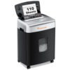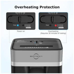 A Trituradora de Papel BONSEN de 14 Folhas e 50 Folhas de Lubrificante oferece uma potência de triturar contínua por até 20 minutos. Equipada com um avançado sistema de resfriamento patenteado, ela destrói até 1.400 folhas em uma única sessão. Após trabalhos pesados, entra automaticamente em modo de resfriamento de 30 minutos para proteger os componentes internos, garantindo durabilidade de uso diário. Com o sistema inteligente JamProof, sensores de início, parada e reversão automática, além de indicadores em tempo real para superaquecimento e sobrecarga, esta trituradora robusta facilita a destruição de documentos, reduz o tempo de inatividade e prolonga a vida útil, sendo uma parceira confiável para trituração em grande volume. Com capacidade para 14 folhas de papel por vez, também pode triturar documentos sensíveis, CDs, cartões de crédito e grampos em pequenas partículas. O pacote de 50 folhas de lubrificante afia, limpa e lubrifica as lâminas da trituradora, compatível com a maioria das marcas e tamanhos de trituradoras para uso doméstico e de escritório.