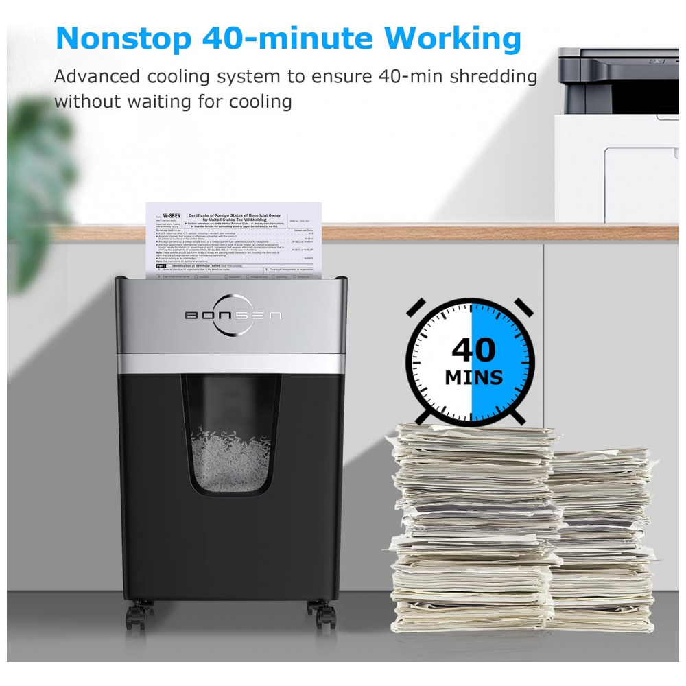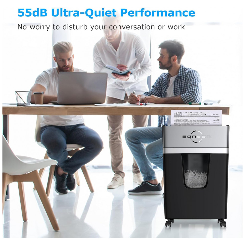 Trituradora de Papel Micro Cut BONSEN 12 Folhas para Uso em Casa e Escritório Alto Nível de Segurança P4 Ultra Silenciosa 55dB