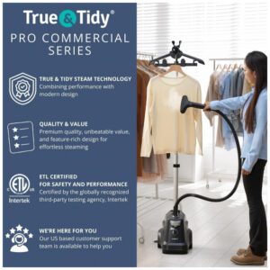 O Vaporizador de Roupas True Tidy AutoOff é ideal para uso profissional e doméstico, oferecendo eficiência e facilidade. Com potência de 1800 watts, é capaz de remover rugas, odores e bactérias de diversos tipos de tecidos, desde seda delicada até cortinas mais espessas. Possui um tanque de água removível de 3 litros que proporciona mais de 90 minutos de vapor contínuo. Seu design compacto com rodas e barra de suporte telescópica facilita a movimentação e o armazenamento. A função AutoOff desliga automaticamente o vaporizador para garantir segurança, emitindo alertas visuais e sonoros quando o nível de água está baixo.