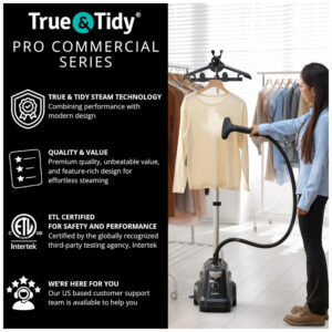 DESENVOLVIDO PARA FACILIDADE NO COMÉRCIO E NA RESIDÊNCIA Projetado para garantir utilização sem esforço tanto em ambientes comerciais quanto residenciais. DESEMPENHO DURÁVEL Possui um reservatório de água removível de 3 litros, fornecendo vapor contínuo por mais de 90 minutos sem interrupções. CONVENIÊNCIA SEM ESFORÇO Conquiste roupas, cortinas e estofados sem rugas facilmente, pendurando com segurança uma variedade de peças com o versátil e seguro cabide multifuncional. MOBILIDADE E ARMAZENAMENTO FÁCIL Possui rodas para fácil movimentação, a barra de suporte telescópica de alumínio se retrai convenientemente para armazenamento compacto. VAPOR DE ALTO DESEMPENHO Com uma saída de vapor impressionante de 1800 watts, é a escolha preferida para eliminar rugas de vários tipos de tecido. DESIGN ELEGANTE Design elegante na cor preta fosca que combina elegância com desempenho de alta qualidade, mantendo suas roupas impecáveis e realçando a decoração da sua casa. CERTIFICADO ETL PARA SEGURANÇA Nossos steamers de roupa certificados pela ETL garantem qualidade e segurança excepcionais, proporcionando uma experiência de vaporização confiável para todas as necessidades de cuidados com as roupas.