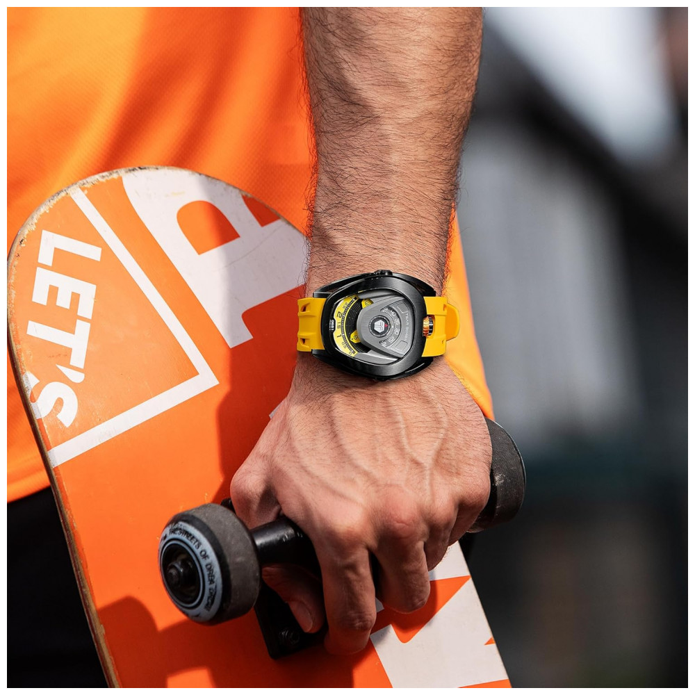 Série Chivalry TSAR BOMBA apresenta o inovador relógio automático intercambiável, o primeiro no mundo com liberação rápida em quatro dimensões. Quebrando tradições, somos pioneiros em oferecer um relógio que pode ser transformado facilmente para combinar com seu estilo. Personalize totalmente o aro, a coroa, a pulseira e a fivela para criar um visual único, refletindo sua personalidade. Cada relógio é fabricado com atenção aos mínimos detalhes, garantindo alta qualidade e acabamento superior. O estojo masculino foi projetado com apenas 13 mm de espessura para proporcionar máximo conforto no pulso.