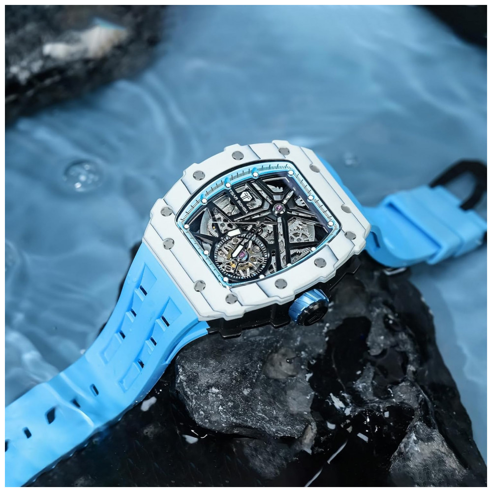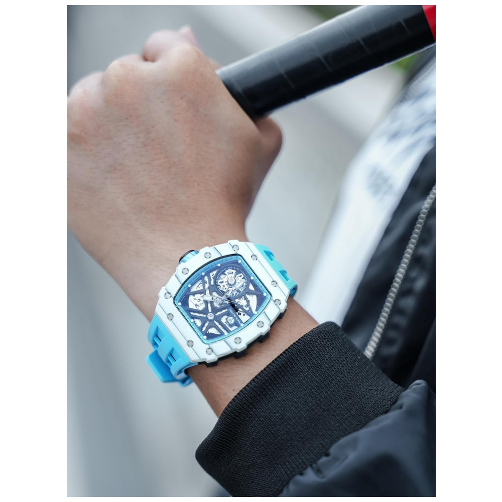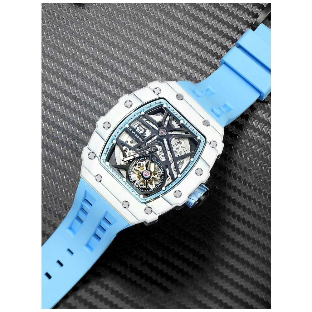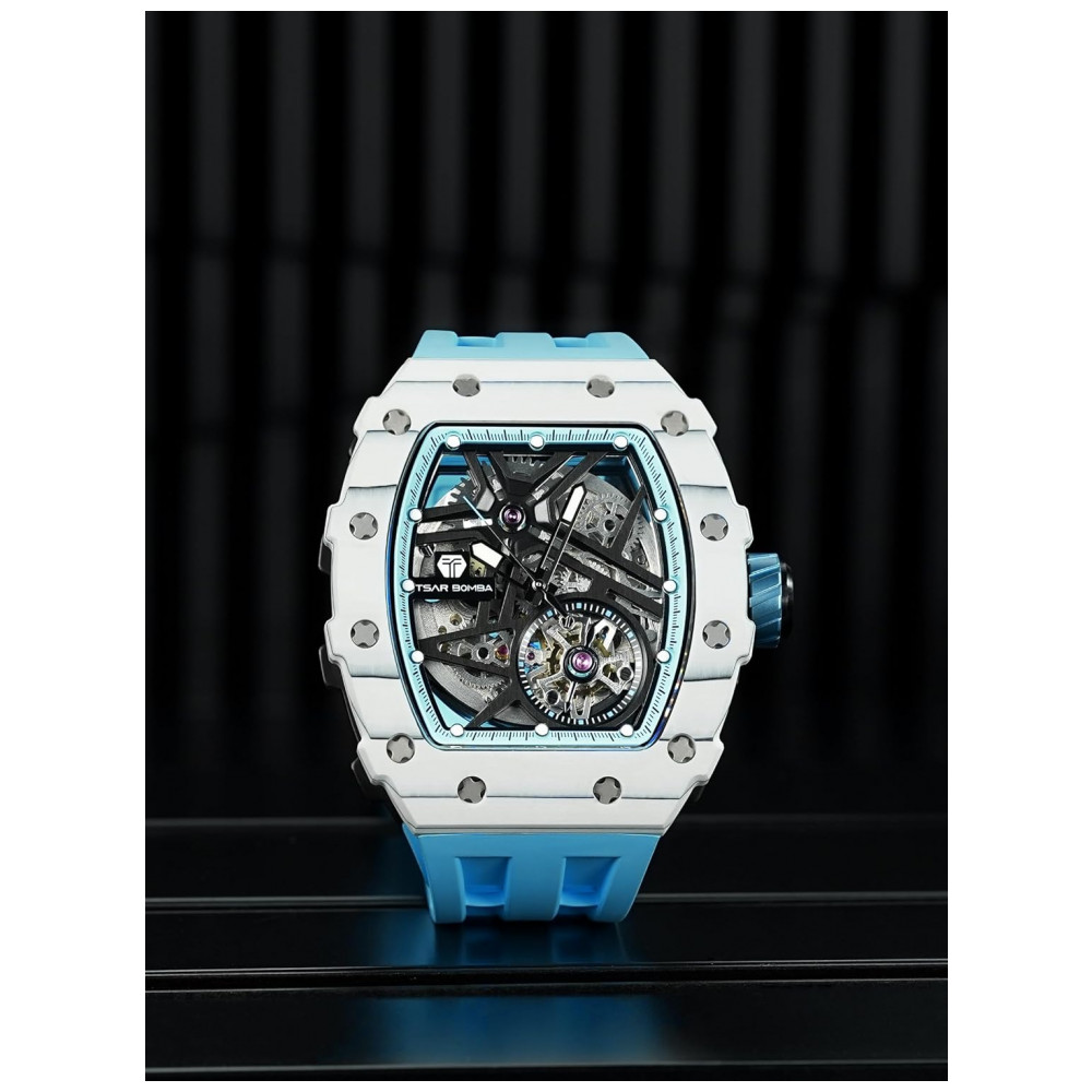 TSAR BOMBA Luxury Relógio Automático Mecânico Masculino com Bisel de Fibra de Carbono e Vidro de Safira 50M à Prova d’Água