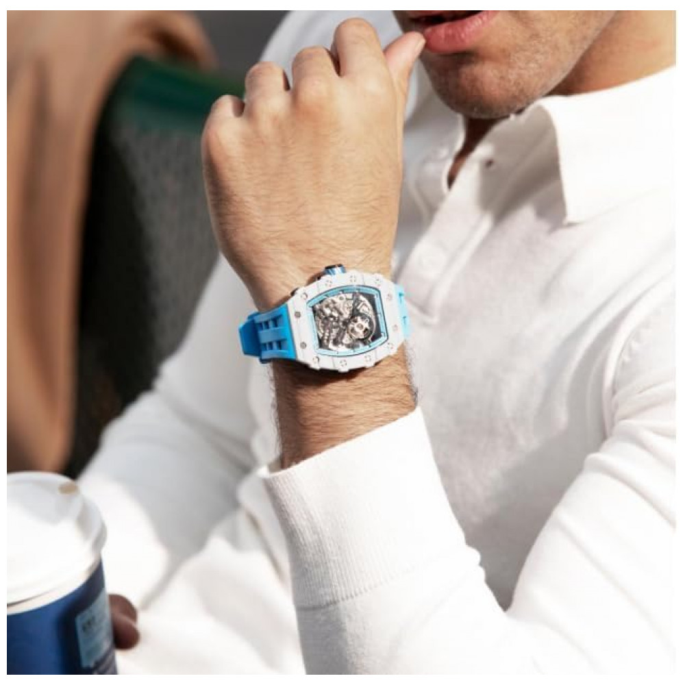 Se você busca um relógio que exale personalidade e luxo, o TSAR BOMBA masculino é a escolha perfeita para suas necessidades. Com seu design inovador em formato barril, que rompe com os modelos tradicionais, este relógio é apreciado por diversas marcas de luxo. Usá-lo fará com que você se destaque, atraindo olhares de admiração e despertando interesse por onde passar. O bisel é fabricado em fibra de carbono forjada, um material leve e com textura única, garantindo que cada relógio TSAR BOMBA seja exclusivo, pois o padrão de carbono forjado não se repete. Complementando a excelência do relógio, a pulseira é feita em fluororubber, um material nobre que apresenta alta resistência à sujeira, óleo, envelhecimento e rasgos, além de ser macio, respirável e extremamente confortável para o uso diário. Seu design colorido traz um toque jovem, moderno e esportivo. O vidro é de safira super curvado, diferentemente dos vidros planos comuns, oferecendo alta resistência a riscos, excelente transmissão de luz e durabilidade superior. Com resistência à água de 50 metros (5 bar), o relógio suporta a maioria das situações cotidianas, embora não seja indicado para uso no chuveiro. Após absorver luz suficiente, o mostrador luminoso mantém um brilho intenso por até 4 horas, facilitando a visualização em ambientes escuros. Este relógio é uma opção elegante e exclusiva para presentes em ocasiões especiais como Natal, Ação de Graças, Dia dos Pais, Dia dos Namorados e aniversários. A alta qualidade do acabamento garante tranquilidade e satisfação, tornando-o um presente inesquecível para quem você ama.
