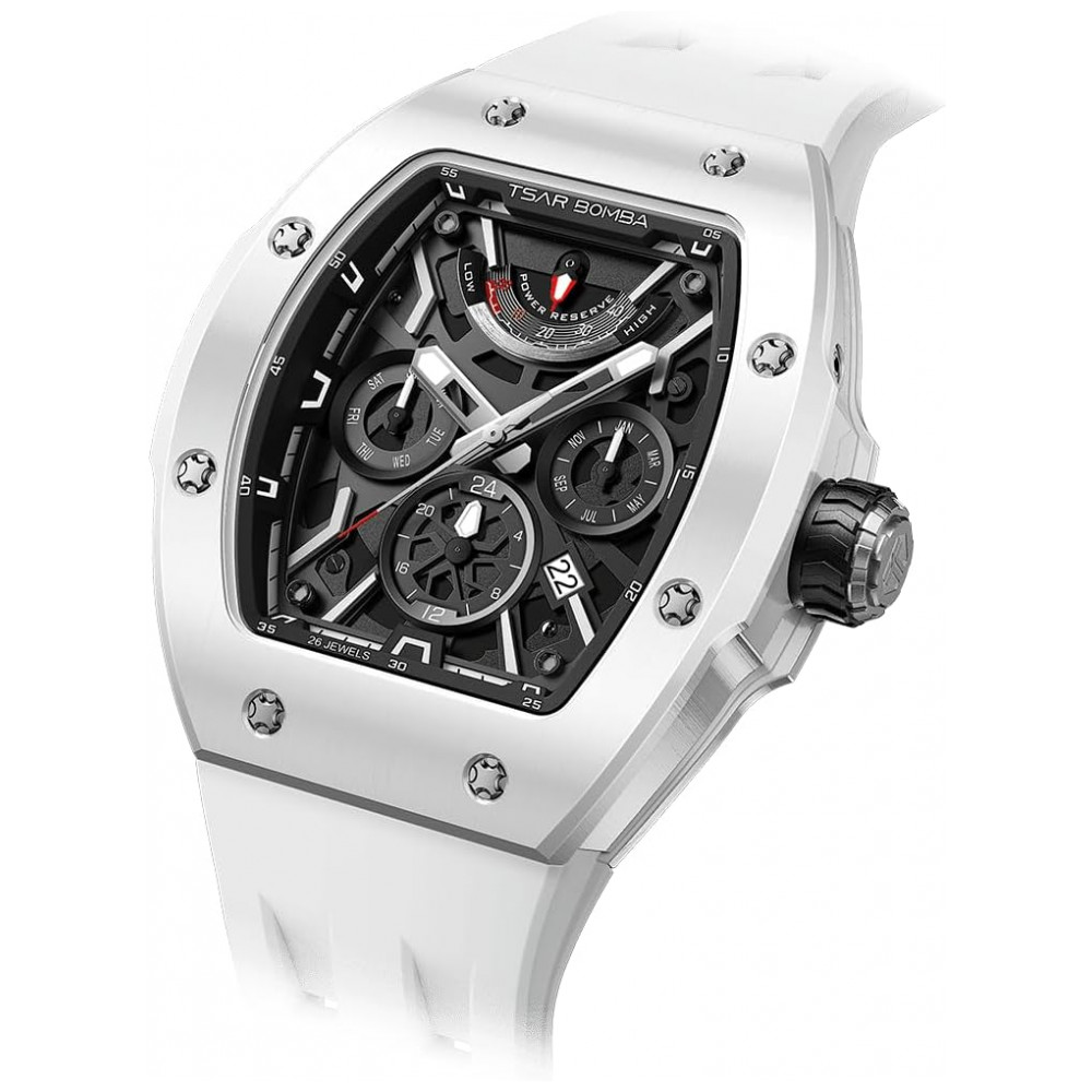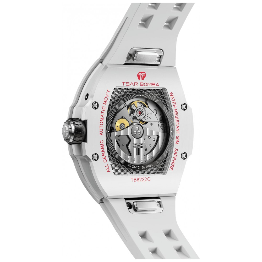 TSAR BOMBA Relógio Automático Masculino Luxuoso Tonneau Mecânico Edição Cerâmica Completa 8222 22C Branco