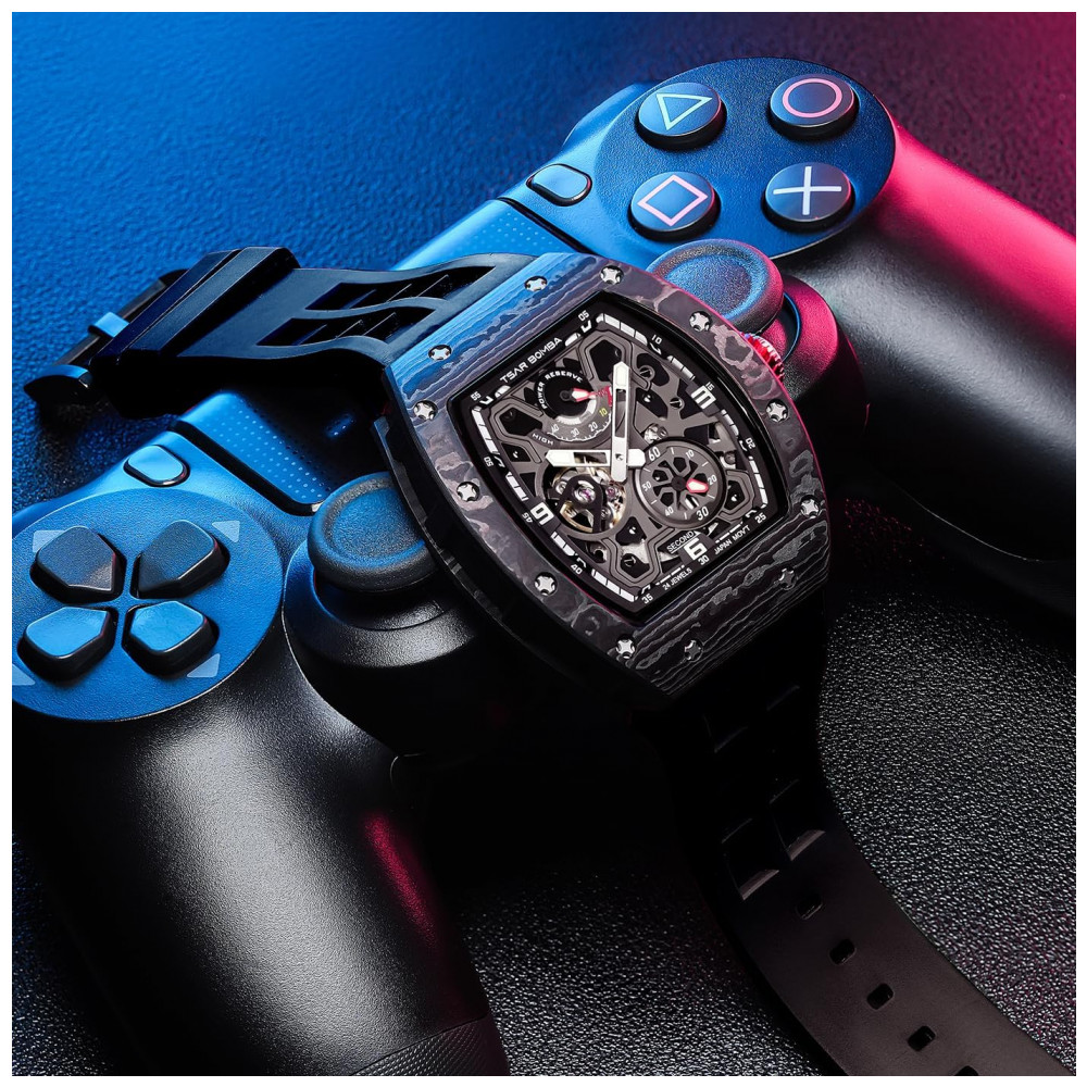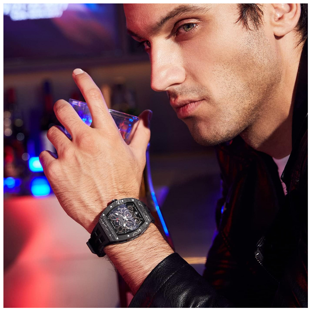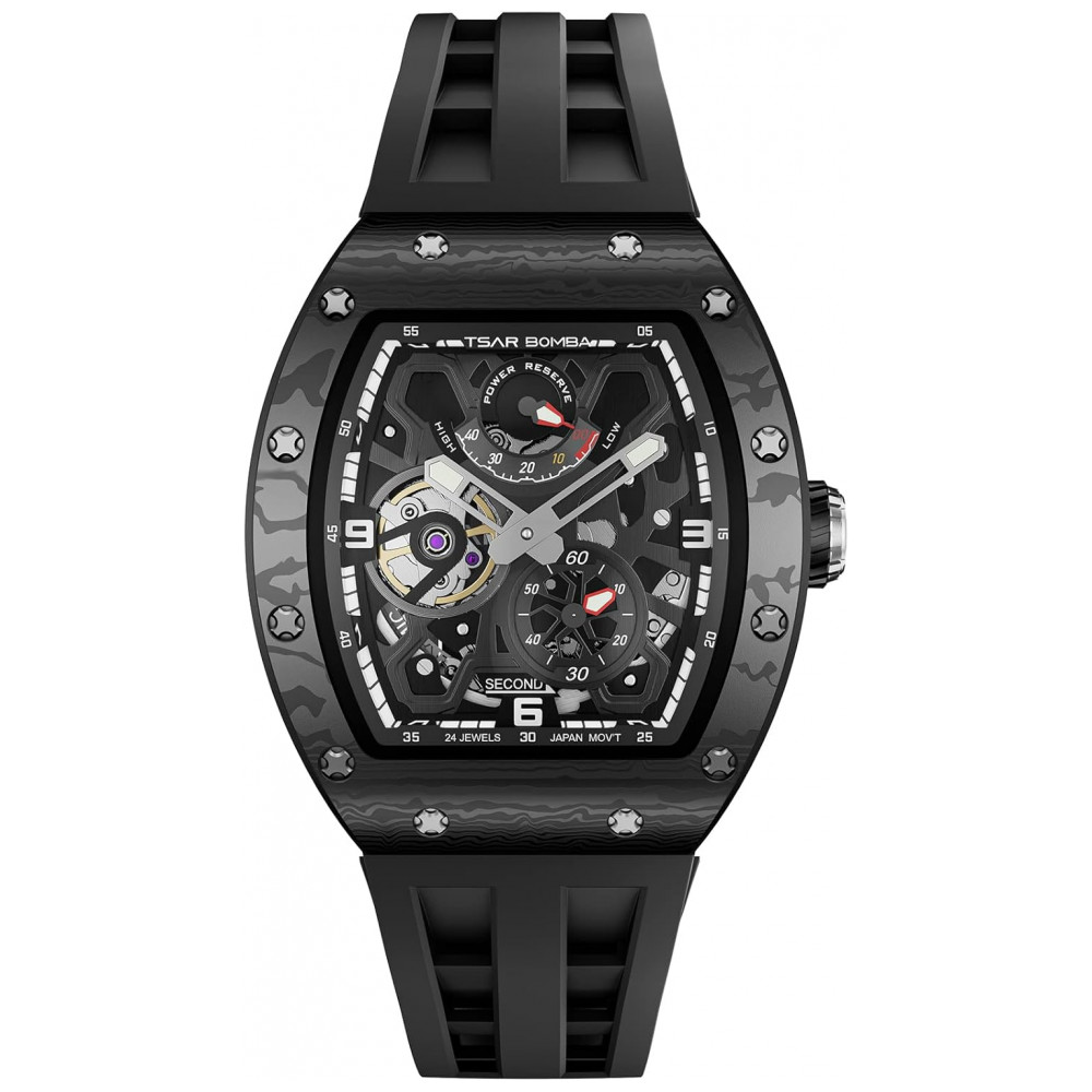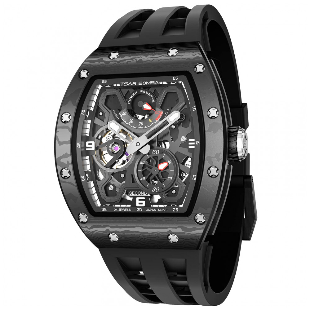 TSAR BOMBA Relógio Masculino Automático Luxo com Bisel em Fibra de Carbono e Cerâmica Vidro de Safira e 50M à Prova d’Água