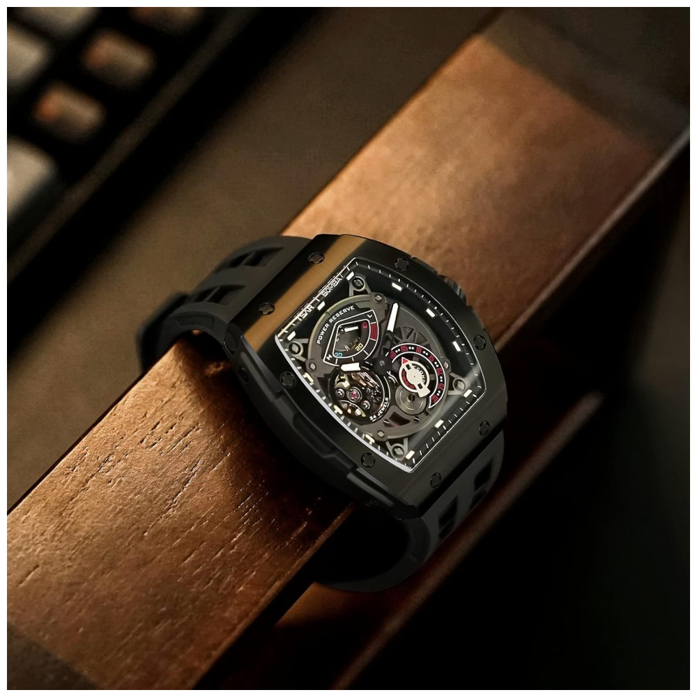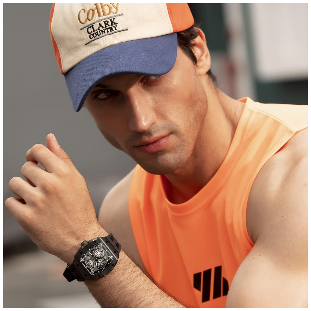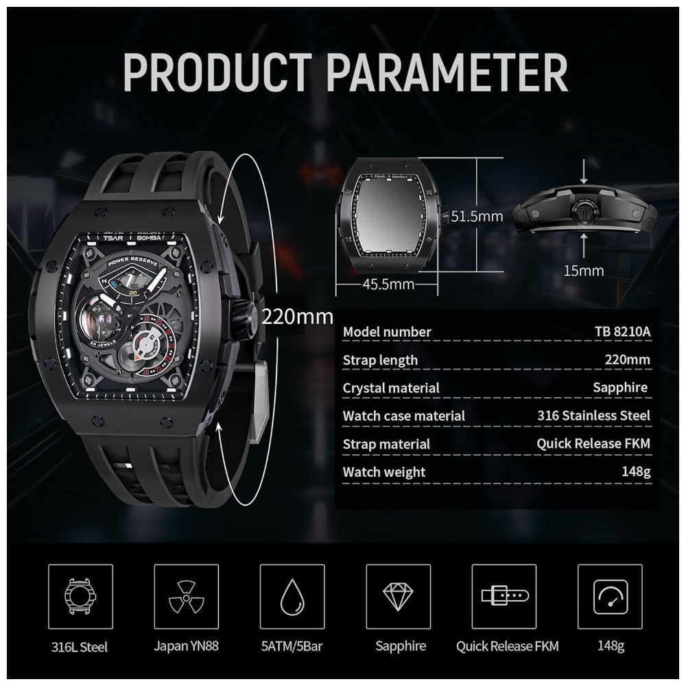 TSAR BOMBA Relógio Masculino Automático Mecânico 50m Resistência à Água Pulseira de Silicone Estilo Único