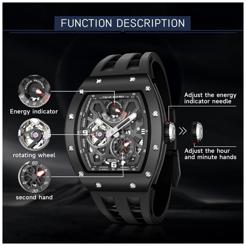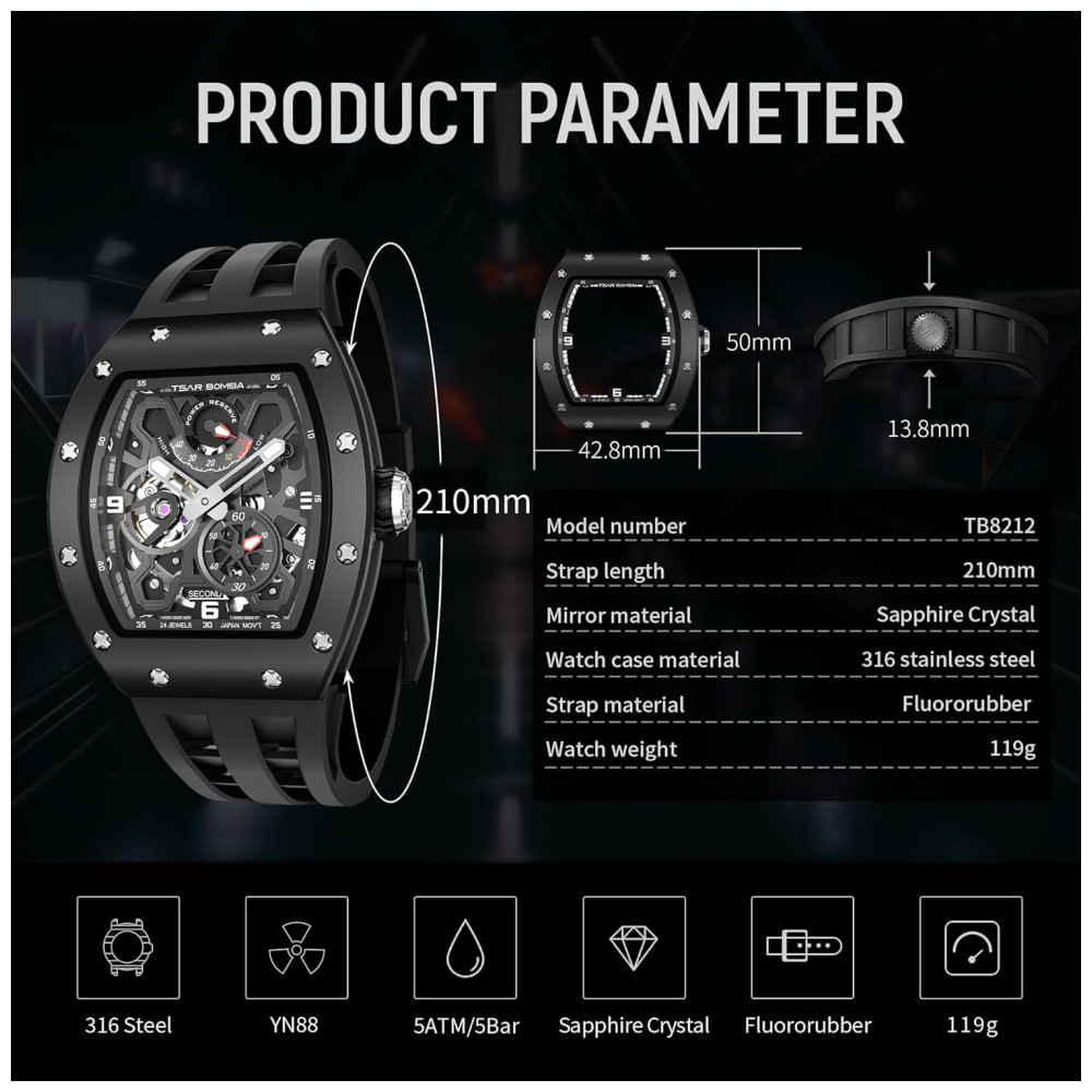 O TSAR BOMBA 8212 é a escolha perfeita para quem busca um relógio mecânico confiável, durável e com design inovador, que alia tecnologia e estilo em um só produto.