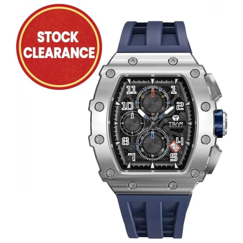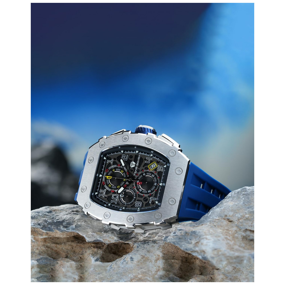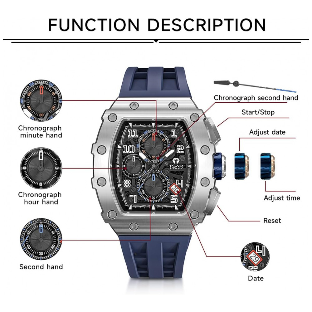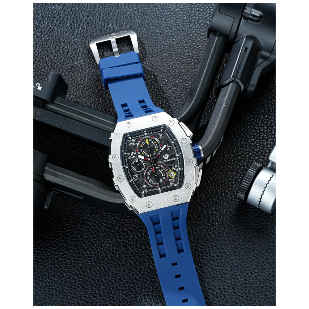TSAR BOMBA Relógio Masculino de Luxo Resistente à Água 50M Pulseira de Silicone Azul Movimento Quartzo Japonês Chronograph