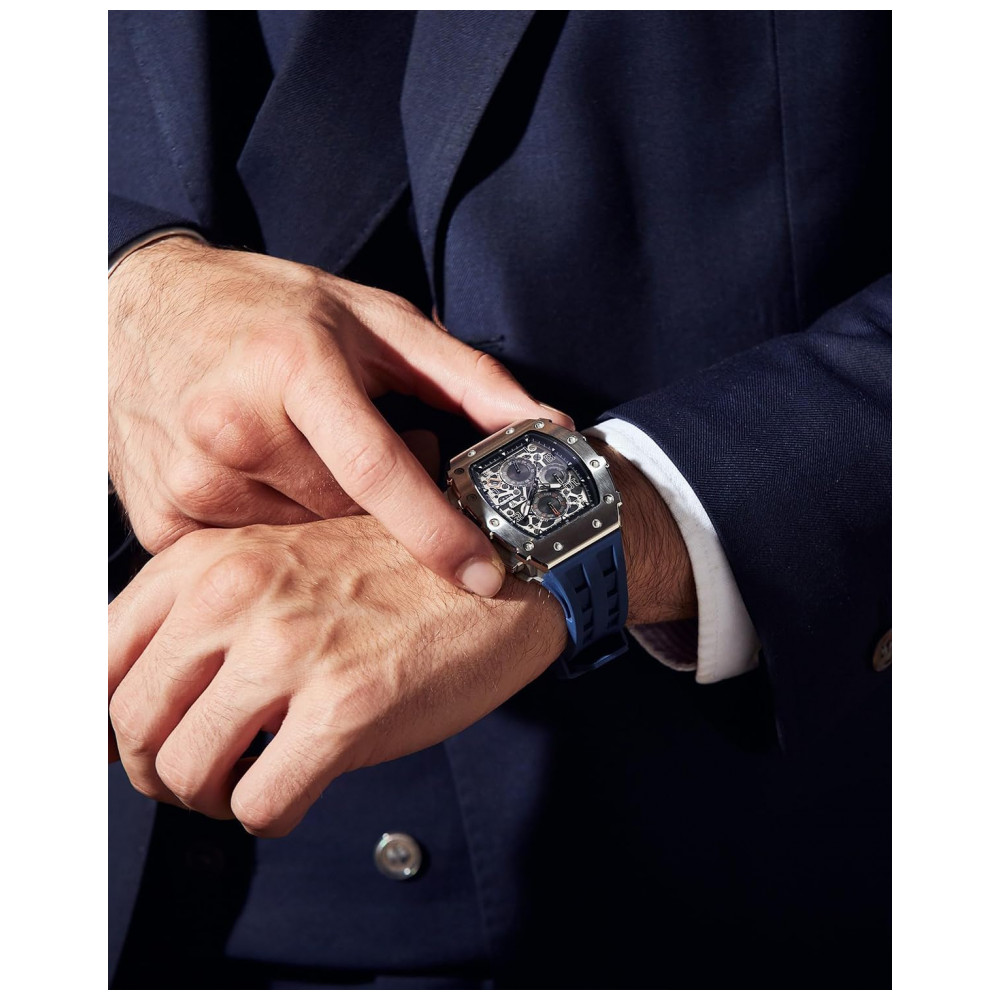 Relógio clássico masculino com design ergonômico, inspirado na forma curva ideal para o pulso, garantindo conforto incomparável durante o uso. A caixa foi atualizada para 15,5 mm de espessura, tornando o relógio mais elegante e sofisticado. Apresenta uma caixa vintage em formato tonneau com design de coroa dupla em ponte para proteção, elevando a qualidade do relógio. O mostrador e a coroa recebem inspiração em carros esportivos, e através do vidro é possível apreciar todos os detalhes cuidadosamente elaborados pelo designer para você. O movimento quartzo japonês de alta qualidade assegura precisão no tempo e estabilidade excepcional, agregando valor ao produto. O mostrador luminoso permite fácil leitura em ambientes escuros. A pulseira de silicone macio é confortável e reduz riscos de alergias, ideal para uso prolongado. O TSAR BOMBA utiliza materiais selecionados de alta qualidade para proporcionar excelente experiência e durabilidade. Com resistência à água 5ATM, suporta respingos diários e natação superficial, porém não é indicado para mergulho ou atividades com água acima de 40ºC, como banho quente. O cristal de safira, extremamente resistente e segundo apenas ao diamante em dureza, é lapidado a frio para garantir proteção contra riscos. A caixa de aço inoxidável 316L, com acabamento chanfrado e polido, oferece resistência e é comumente usada em instrumentos cirúrgicos. Este relógio masculino resistente à água é uma peça de alta qualidade e colecionável. Perfeito como presente, o TSAR BOMBA possui cores elegantes, combinando caixa prateada com pulseira preta para um visual moderno e atraente. Seu design retrô e acabamento refinado o torna ideal para uso diário ou em ocasiões formais e de negócios. Seja para Natal, Ação de Graças, Dia dos Pais, Dia dos Namorados ou aniversários, o TSAR BOMBA é o presente ideal para você e quem você ama.