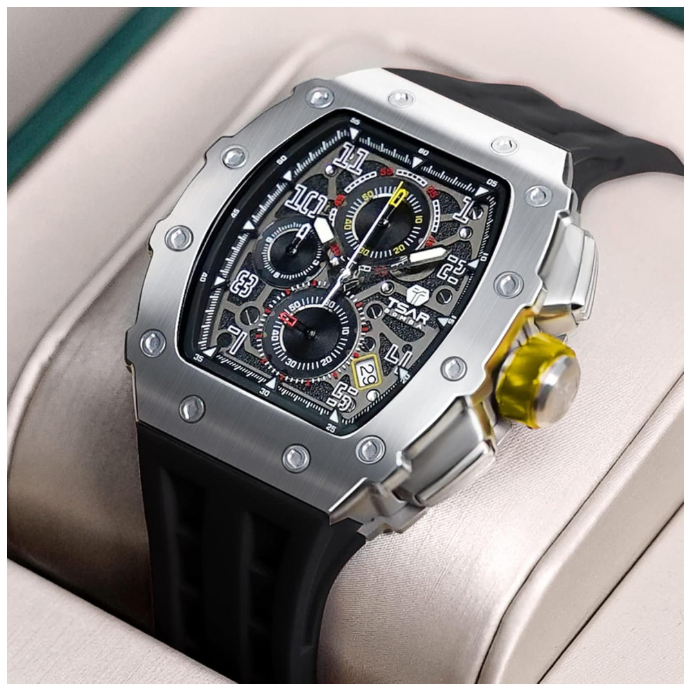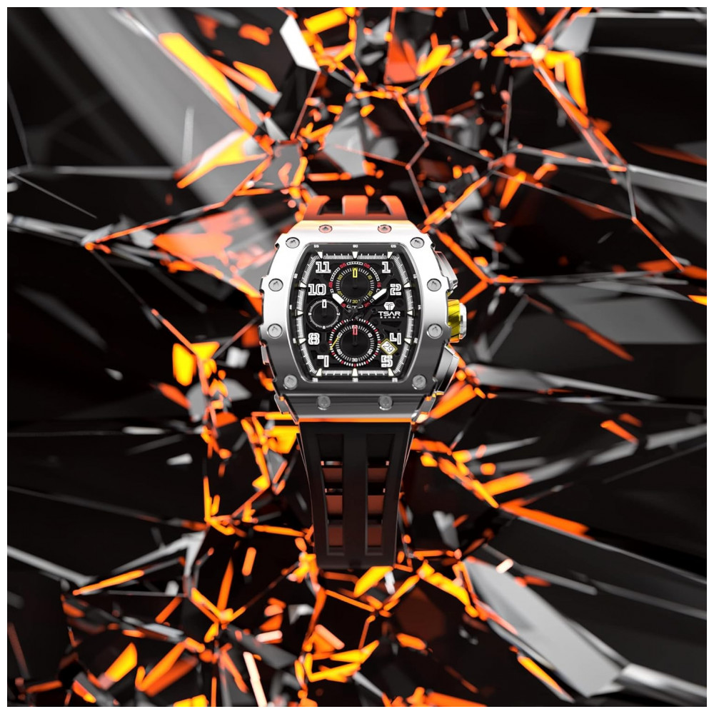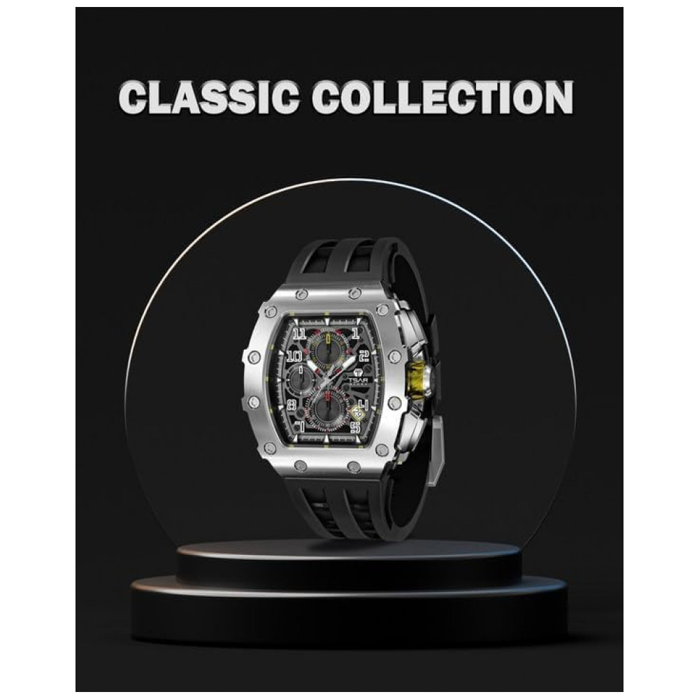 TSAR BOMBA Relógio Masculino Luxuoso Tonneau à Prova d’Água 50M com Cronógrafo e Calendário
