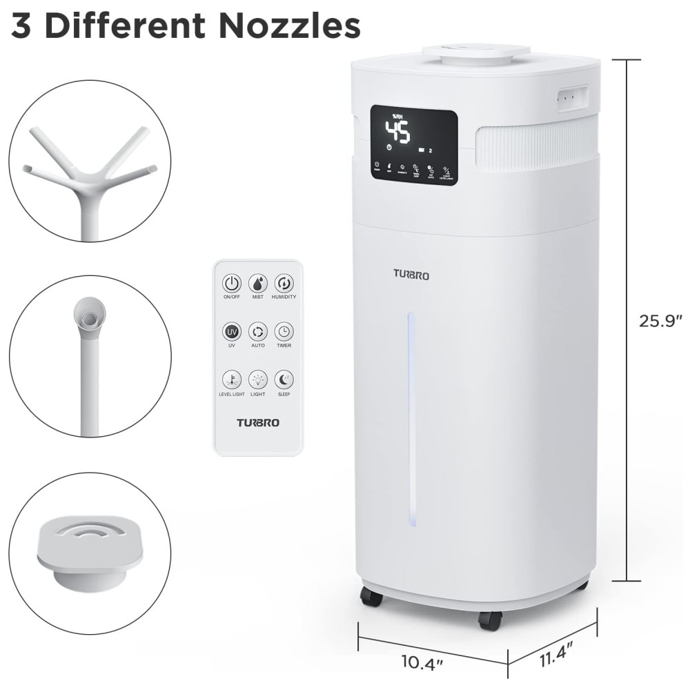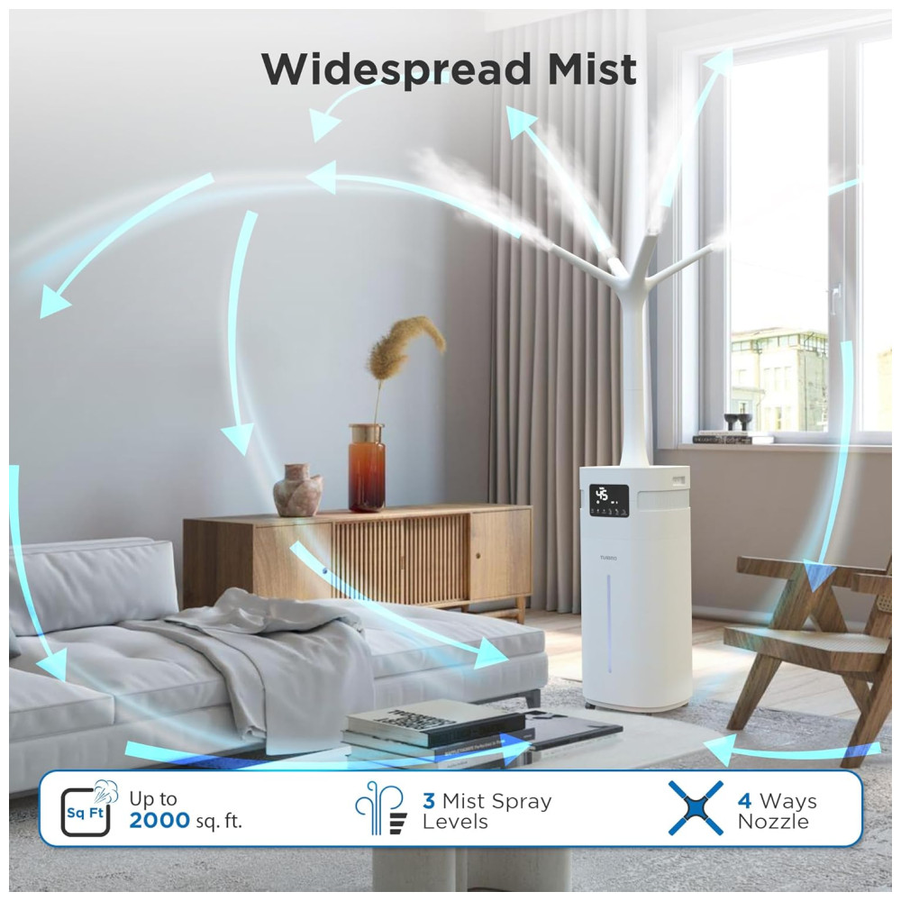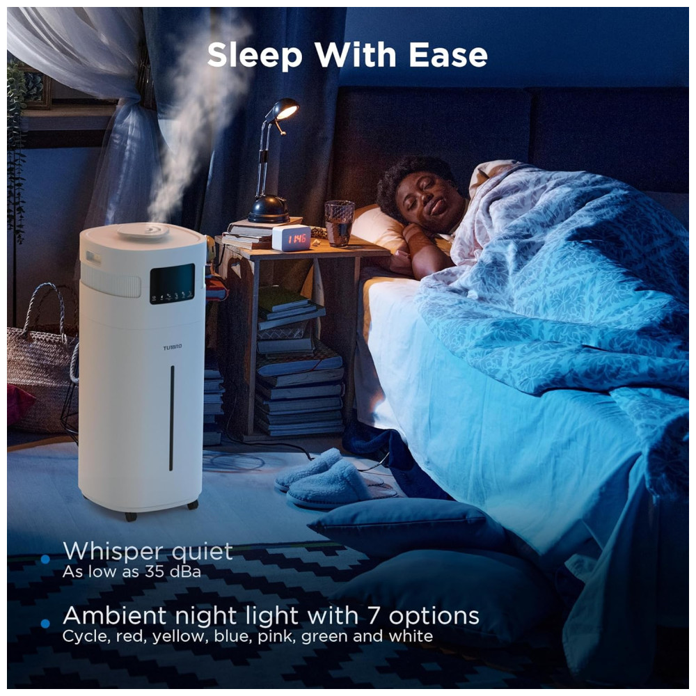 Umidificador 20L com Bico de 360° Enchimento Superior LED UV-C Display Digital Controle Remoto e Por APP para Ambiantes até 185m² 110V TURBRO Branco
