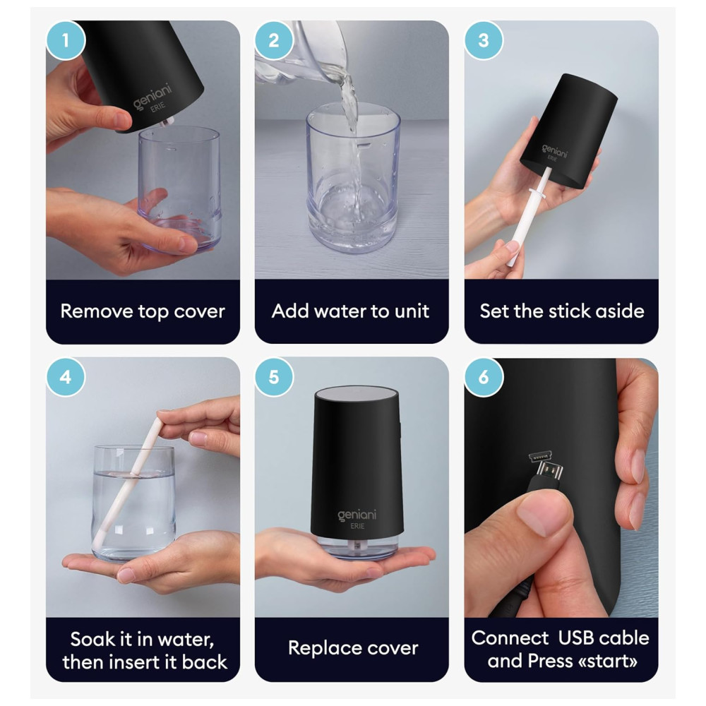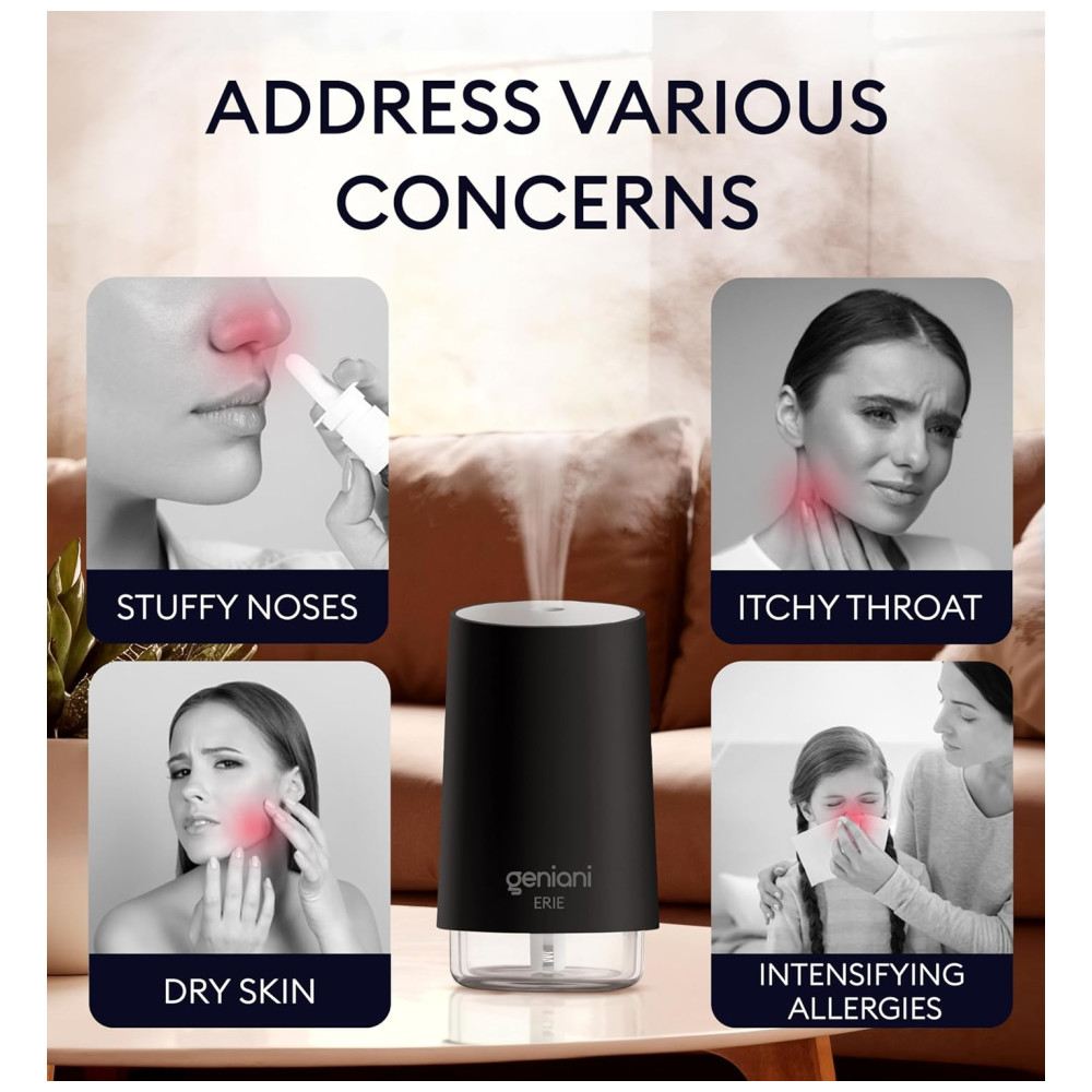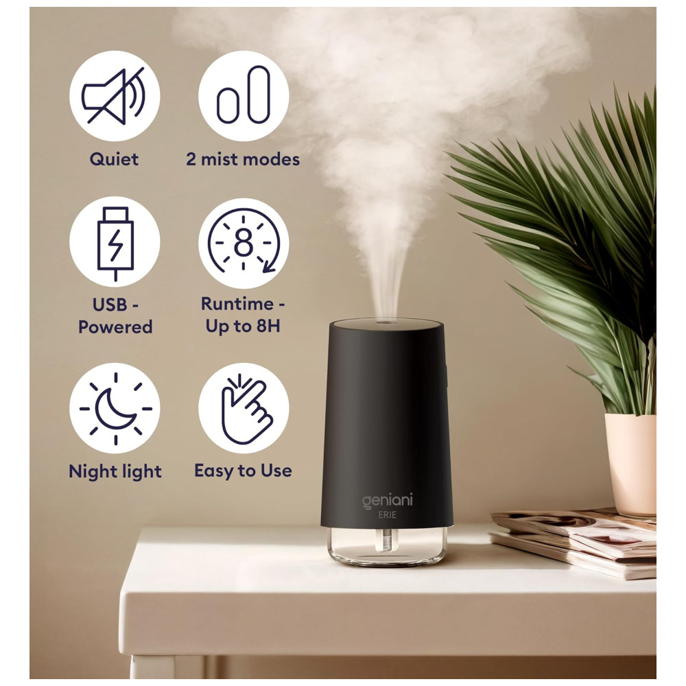 Umidificador 250ML com Desligamento Automático e Luz Noturna GENIANI Erie Preto