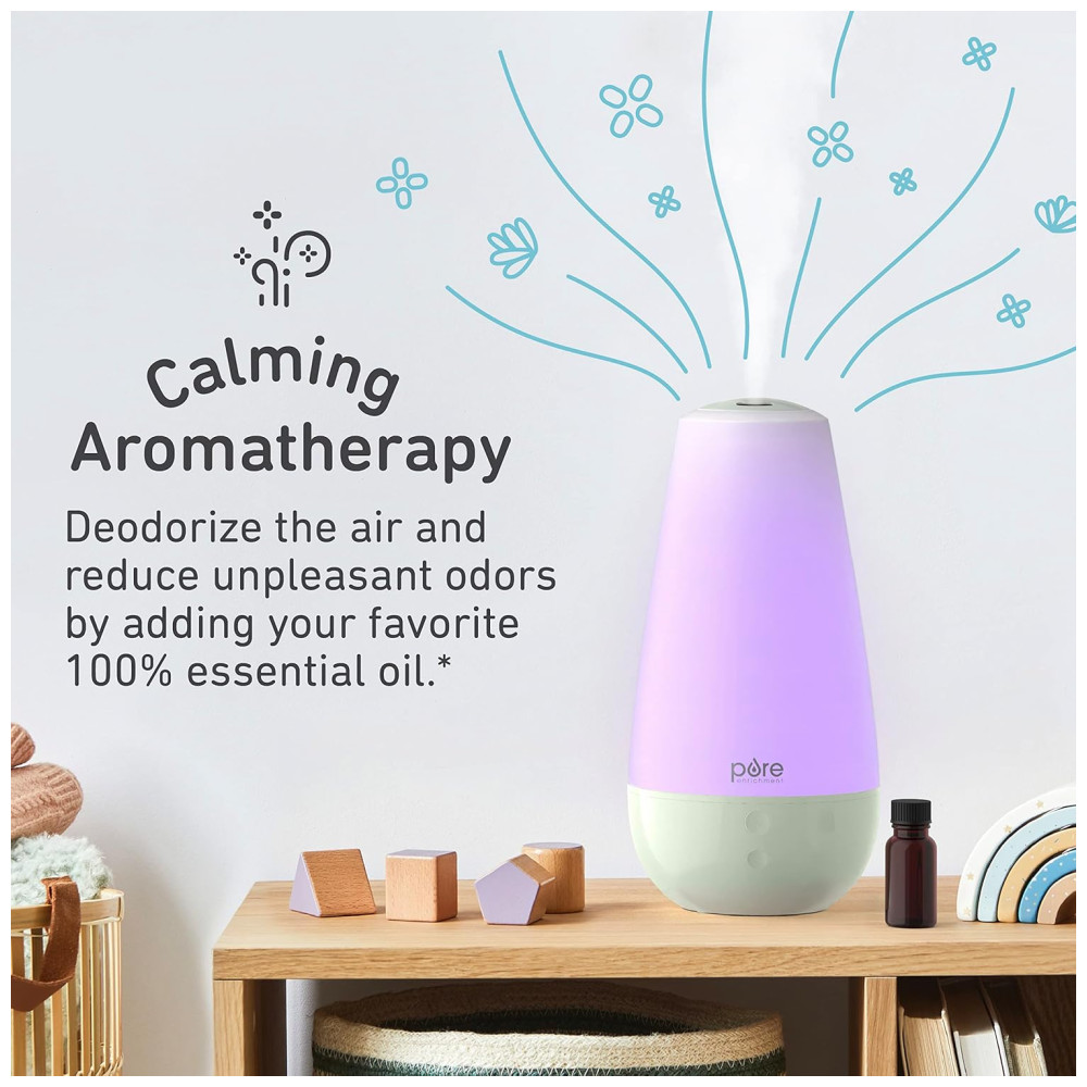 AROMATERAPIA TOTALMENTE NATURAL: Adicione seu óleo essencial 100 puro favorito não incluído ao tanque de água e à base para desodorizar o ar, reduzir odores desagradáveis e ajudar seu filho a relaxar. Uso recomendado para crianças a partir de 6 meses. Consulte seu pediatra antes de usar óleo essencial