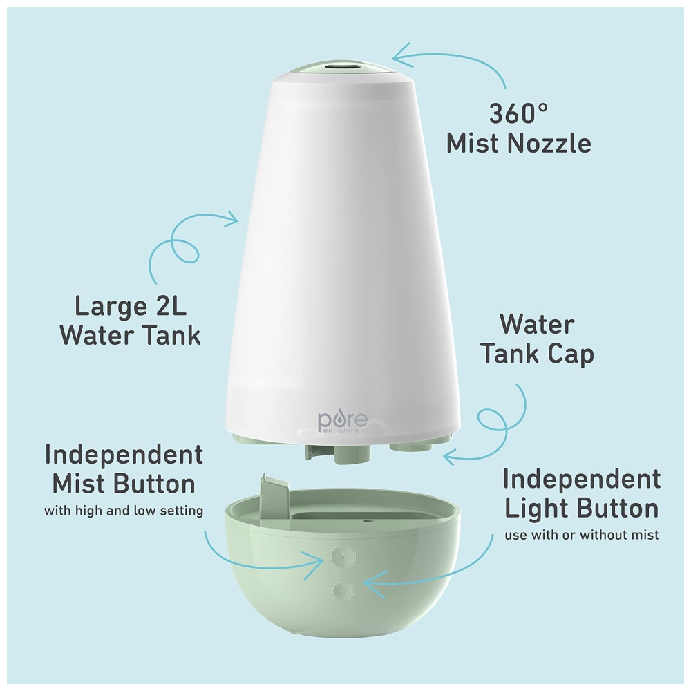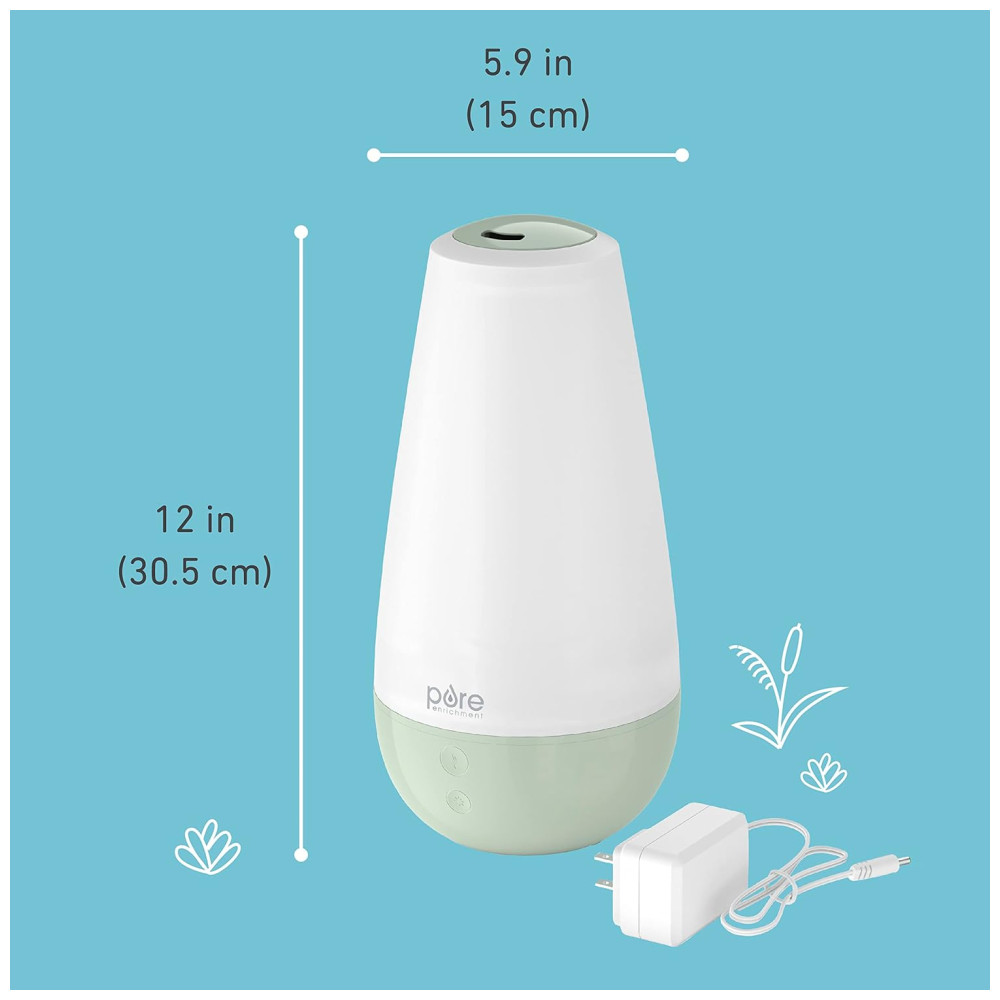 Umidificador 3 em 1 Silencioso 2 Liros com Luz Noturna Difusor de Óleo Essencial Pure Enrichment Branco e Verde