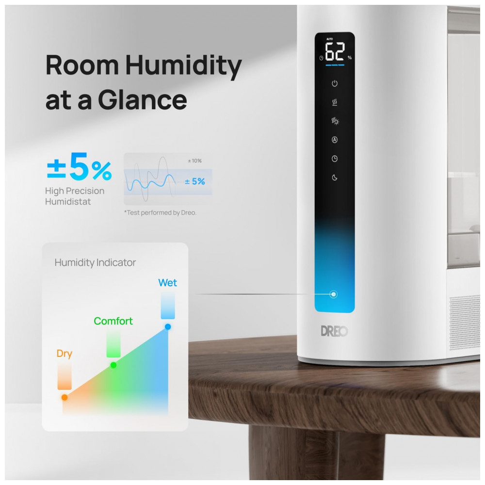 Umidificador 6 Litros com Sensor de Umidade Bandeja de Aroma e Modo Suspensçao Dreo Branco
