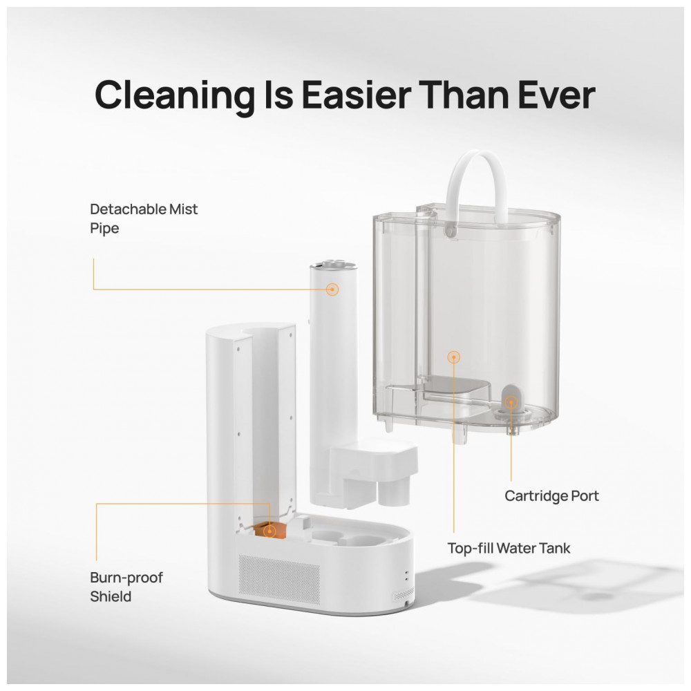 Controlo Preciso da Humidade da Sala: Graças ao seu algoritmo de deteção e compensação preciso, o humidificador para quarto permite lhe definir eficazmente a humidade da sala dentro de 5, duas vezes mais preciso do que os humidificadores tradicionais, enquanto sua luz indicadora de umidade permite que você verifique facilmente a umidade da sala de estar de longe.