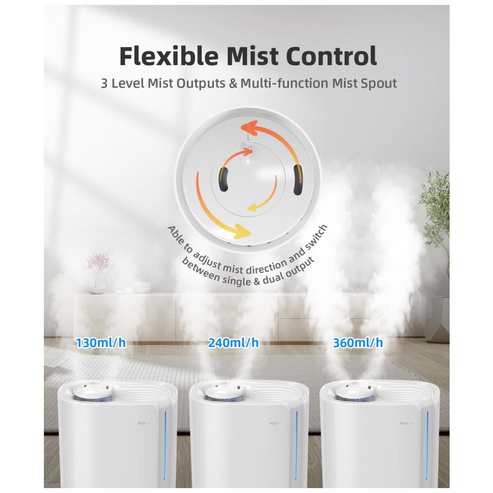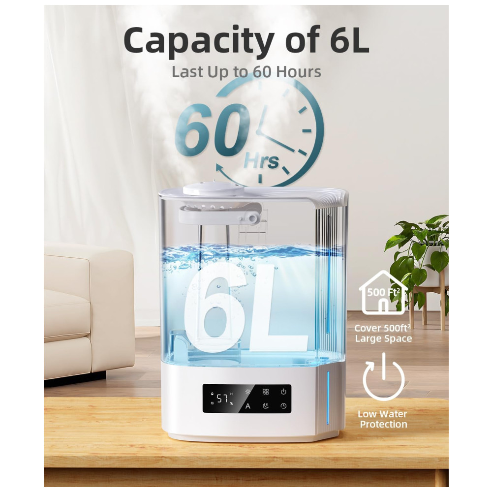 Umidificador Ultrassônico: este umidificador é ideal para quartos de bebês e salas grandes de até 50 m² (500 pés quadrados). Com um tanque de 6,06 litros, ele proporciona uma umidificação duradoura de até 60 horas.