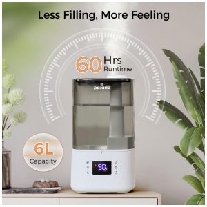 Umidificador BOXING 6 Litros com Vapor Quente e Frio Controle Remoto Modo Automático – Ideal para Quarto de Bebê e Plantas Enchimento Fácil Modo Noturno