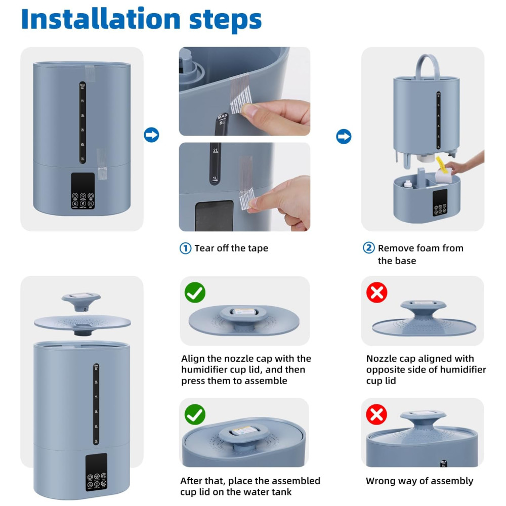 Umidificador de Ar de 6 Litros para Ambientes Amplos Quente e Frio Perfeito para Quarto de Bebê e Plantas Design Prático Top FillCoolfiqu