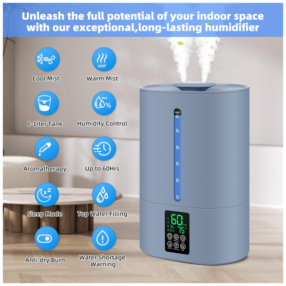O Umidificador de 6L da Coolfiqu é perfeito para manter o ar do seu ambiente saudável, oferecendo opções de névoa quente e fria com apenas um toque. A névoa fria melhora a qualidade do sono, enquanto a névoa quente é ideal para hidratar a pele e aliviar desconfortos. Com design top fill, a praticidade toma conta: basta despejar a água diretamente no reservatório. Com capacidade para operar por 60 horas, é ideal para grandes ambientes, garantindo umidificação consistente. Com bico rotativo 360º, dispersa a névoa em todas as direções, criando um ambiente acolhedor. Seus 3 níveis de ajuste de névoa se adaptam às suas preferências, e o modo de sono mantém o ambiente tranquilo durante a noite. Além disso, conta com função antidry burn para máxima segurança, desligando automaticamente quando o nível de água está baixo. Compatível com difusor de óleos essenciais, o Coolfiqu é a escolha ideal para perfumar e umedecer o ambiente. Surpreenda seus amigos e familiares com este umidificador moderno e eficiente!