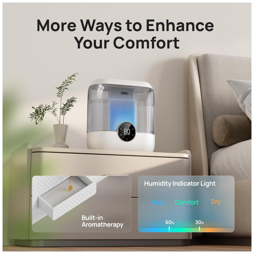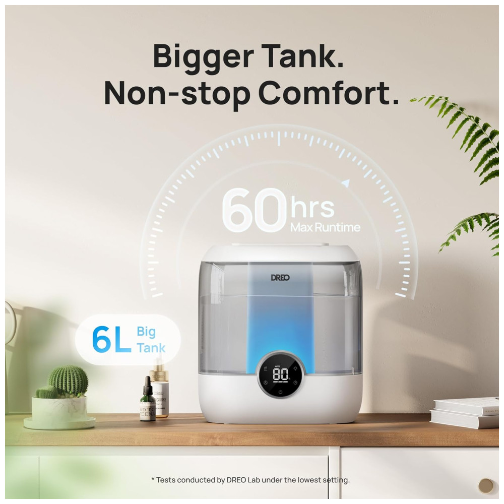 Umidificador de Ar Dreo para Quarto 6 Litros Design Prático para Ambientes Amplos Autonomia de 60 Horas Funcionamento Inteligente