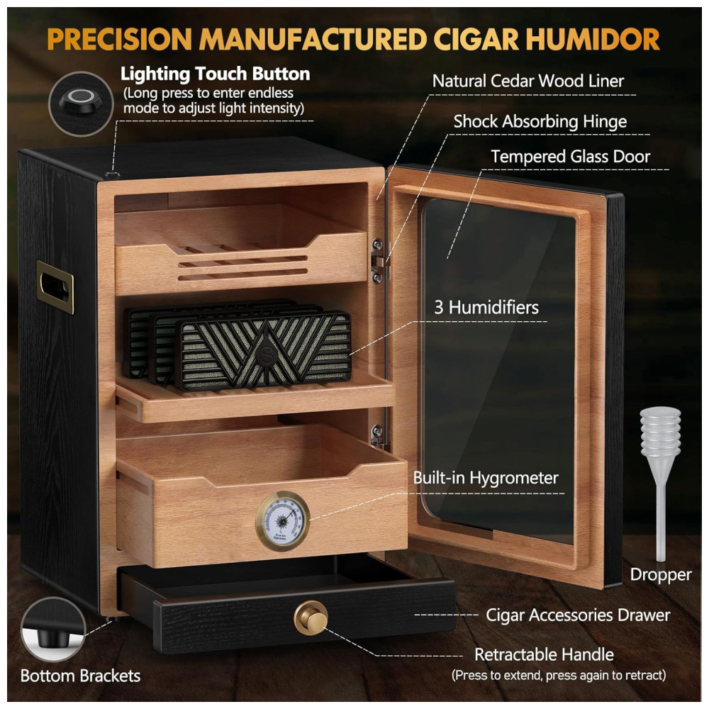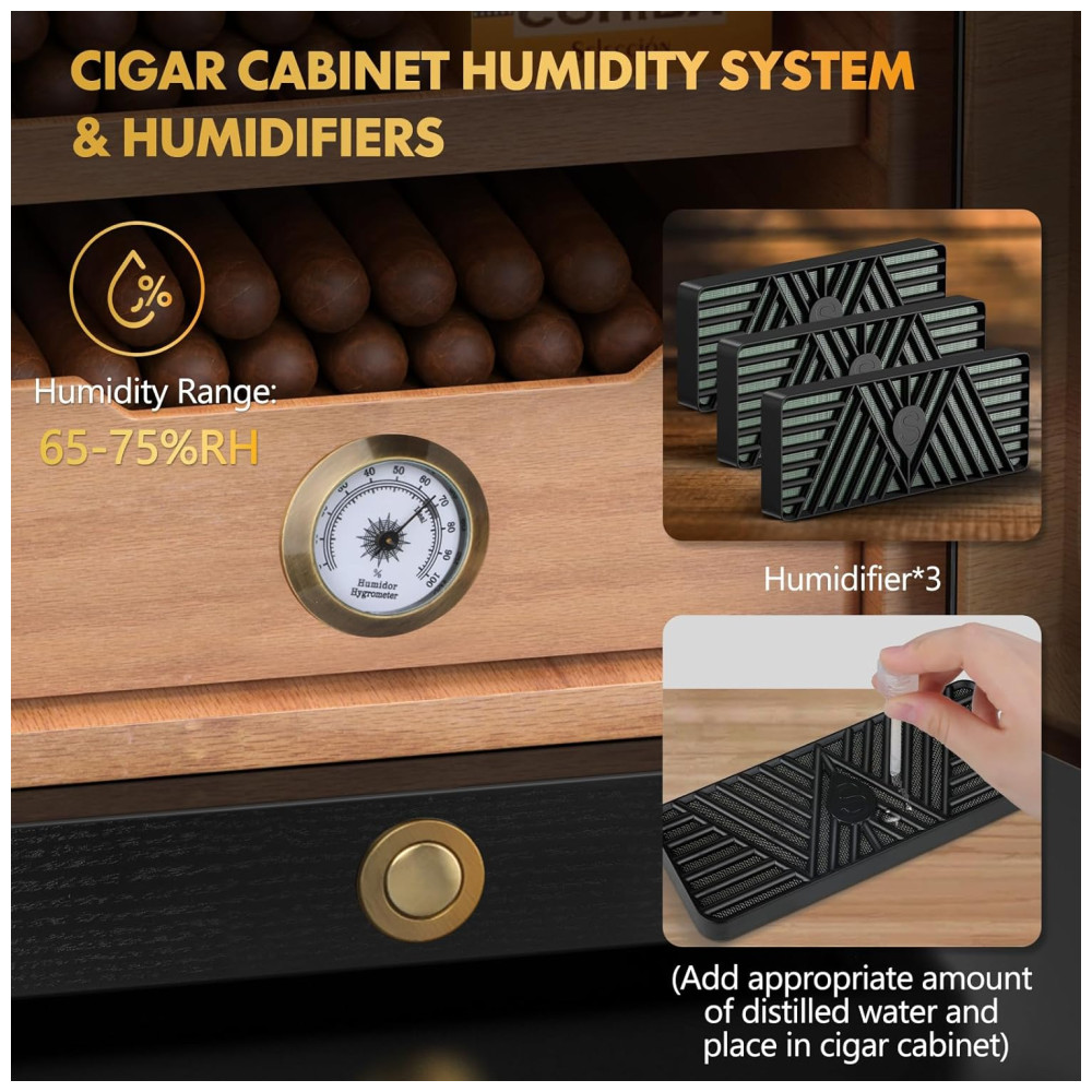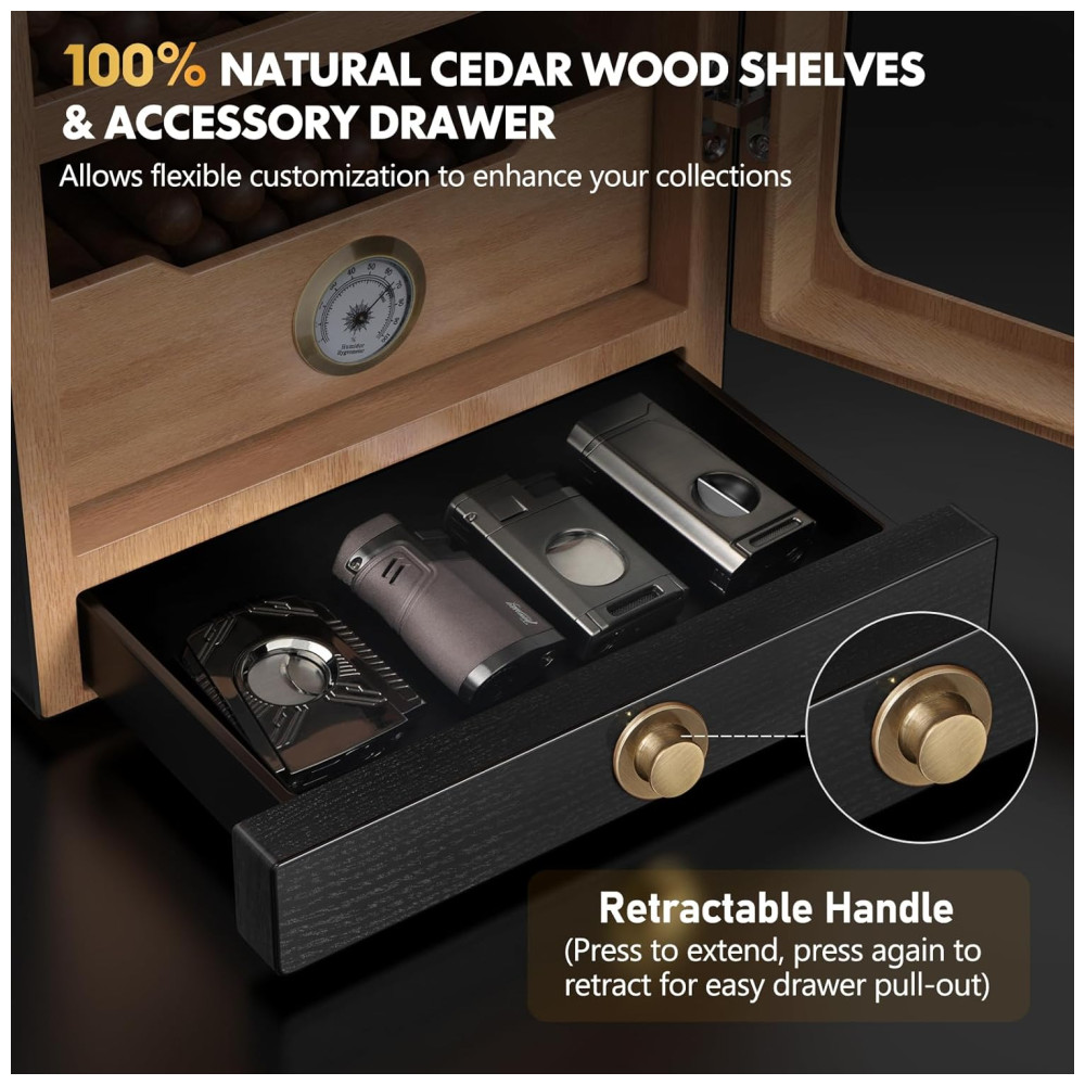 Umidificador de charutos. Prateleiras de Cedro Espanhol Higrômetro 3 umidificadores e Gaveta de Acessórios