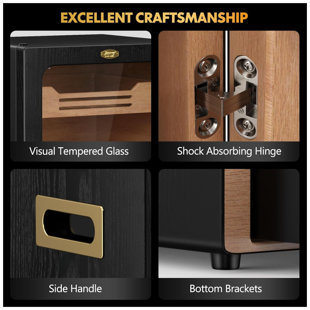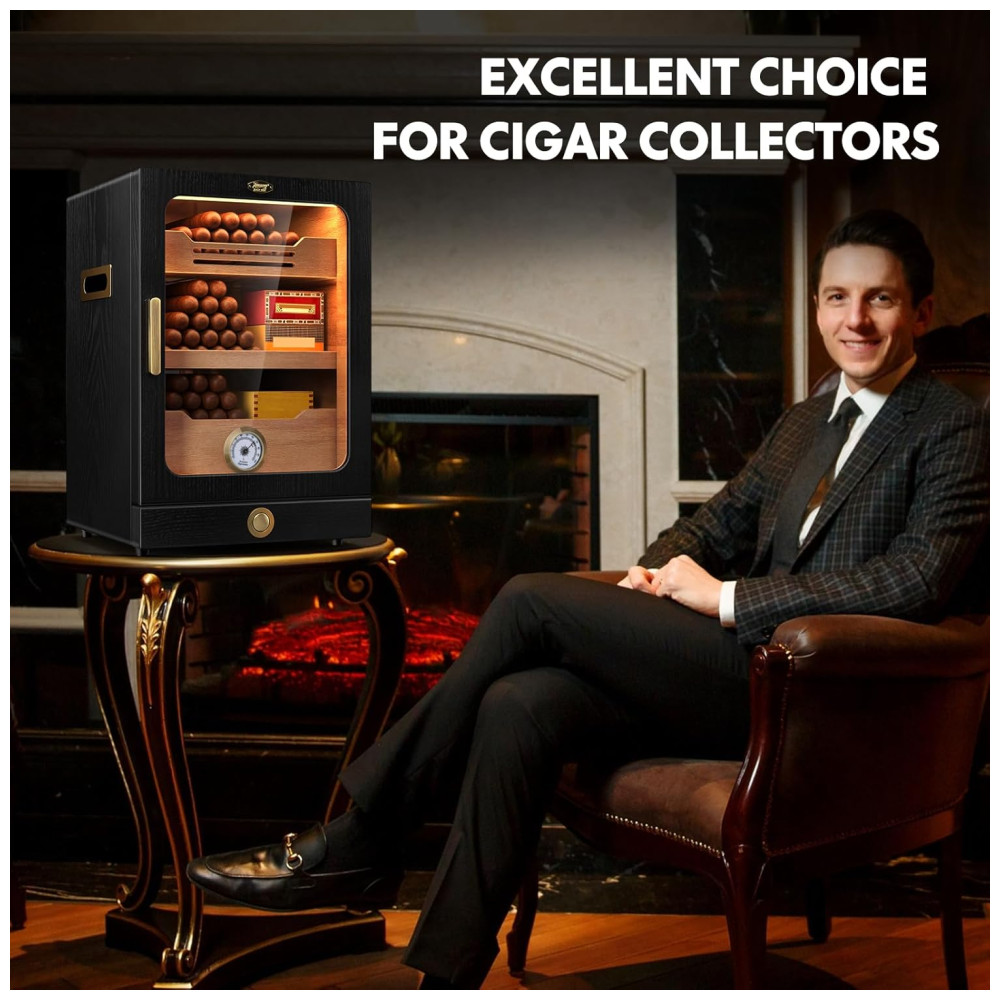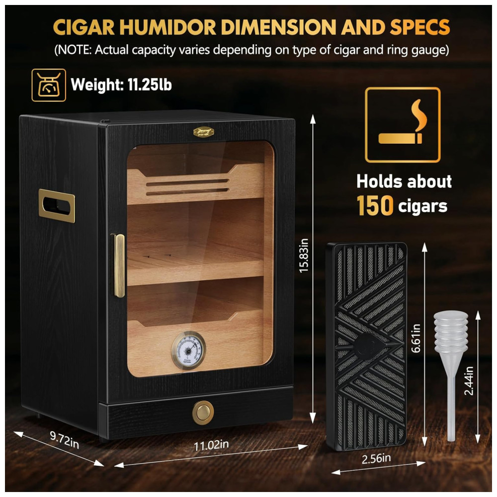 O Humidor de Cigars é a solução perfeita para manter sua coleção de charutos de qualidade. Com capacidade para armazenar aproximadamente 100-150 charutos, possui três camadas de armazenamento e uma gaveta de acessórios personalizável. Equipado com um sistema de iluminação LED e um medidor de umidade frontal, este humidor garante que seus charutos estejam sempre em condições ideais para fumar. Feito com materiais de alta qualidade, incluindo madeira de cedro espanhol e vidro temperado, este humidor é um presente elegante e sofisticado para qualquer amante de charutos. Aproveite a experiência única de fumar um charuto perfeitamente armazenado com o Humidor de Charutos