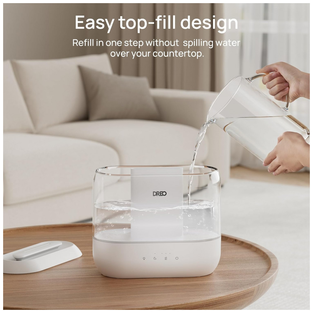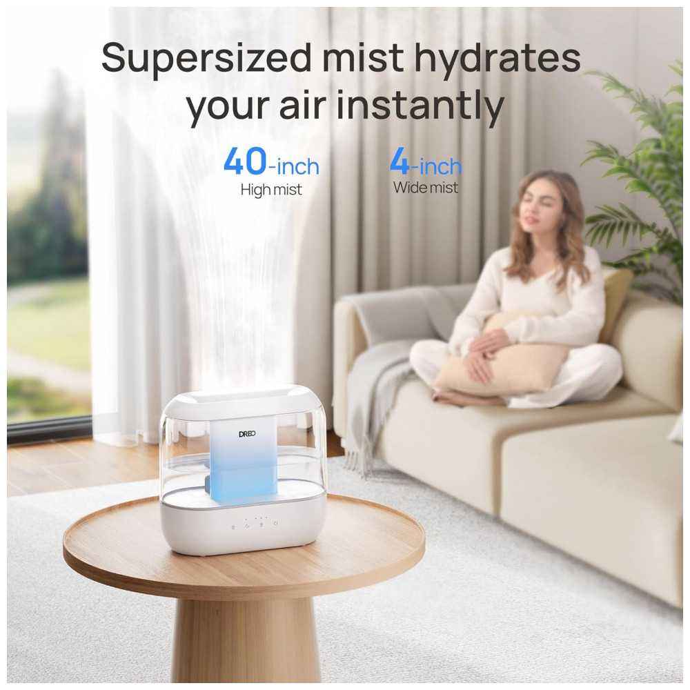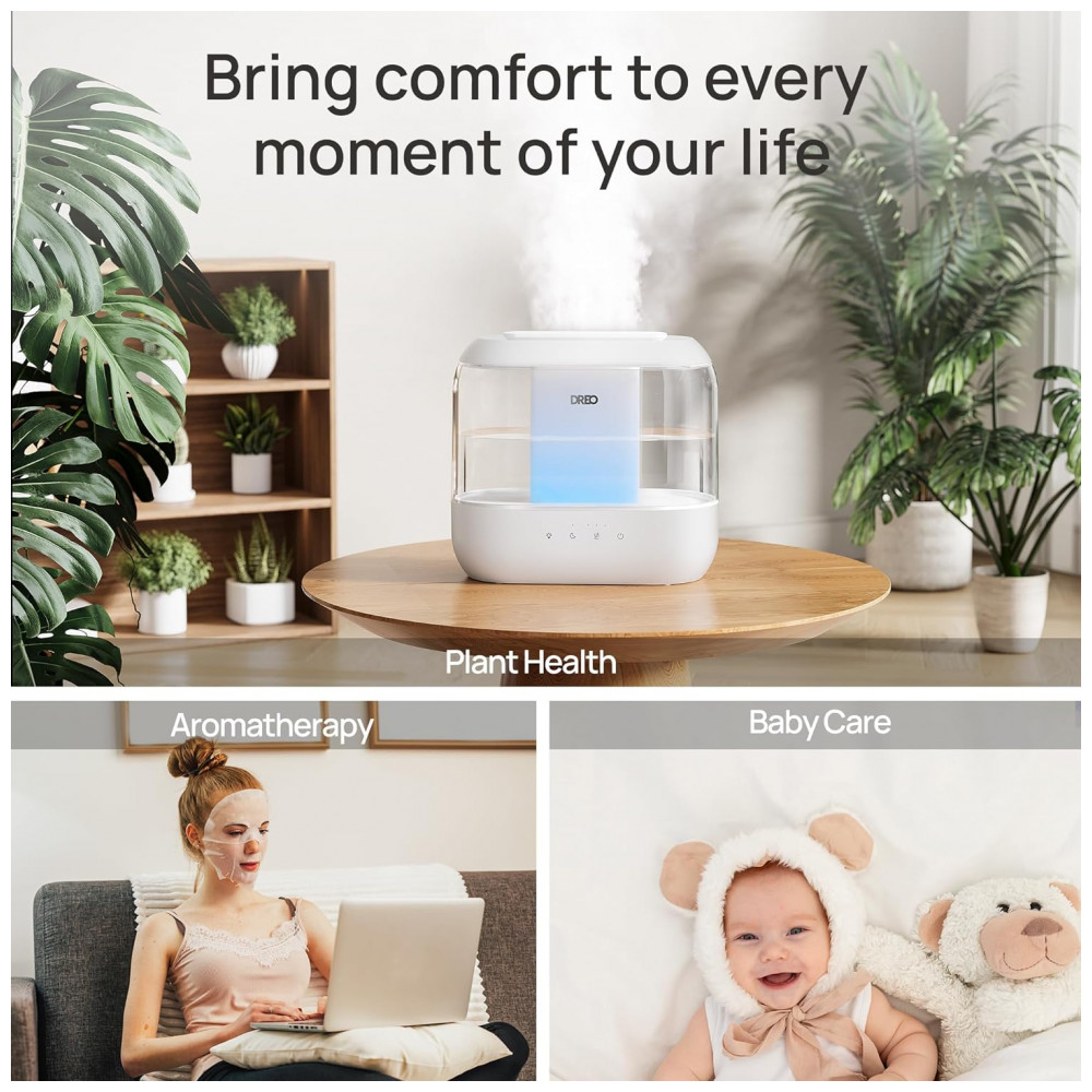 Umidificador Dreo HM311 Branco 4 Litros Top Fill Quarto Bebê Ultra Silencioso 36h Aroma Luz Noturna Limpeza Fácil Controle Toque 110V