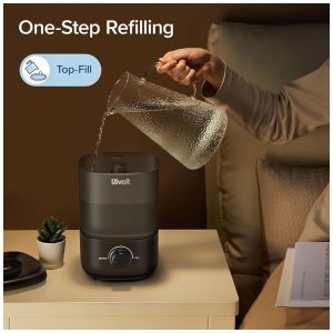 O umidificador LEVOIT Classic 160 foi desenvolvido para ambientes domésticos, proporcionando umidificação eficiente com operação silenciosa em quartos, escritórios e espaços para crianças. Com capacidade de 2,5 litros e tecnologia ultrassônica, oferece funcionamento contínuo de até 25 horas no nível mínimo. O design Top-Fill permite o reabastecimento rápido e prático pelo topo do reservatório, facilitando a limpeza através da ampla abertura e base sem cantos difíceis. Equipado com controle de intensidade do vapor e bico giratório de 360°, possibilita direcionamento personalizado da névoa. Possui desligamento automático em caso de ausência de água e não emite luz durante o uso, preservando o ambiente para o descanso. Estrutura em material BPA-free, adequada para uso em quartos de adultos e crianças.