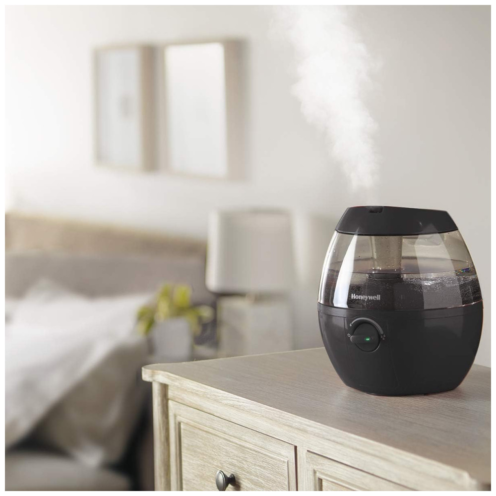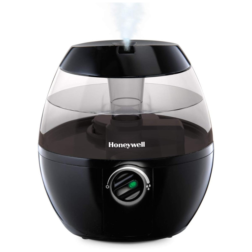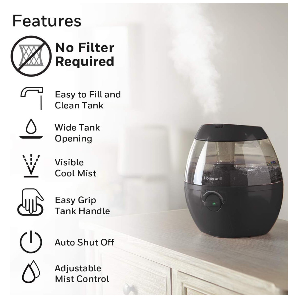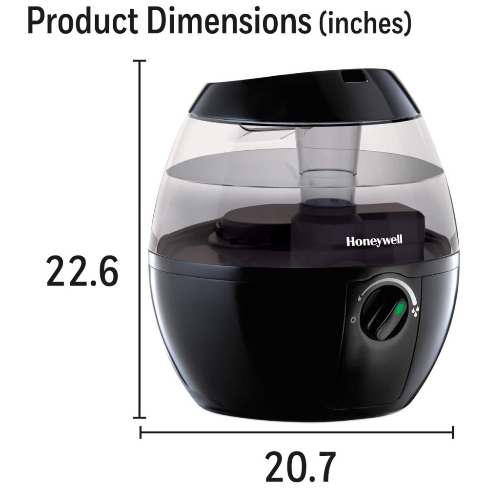 O Honeywell HUL520B Mistmate é um umidificador ultrassônico portátil, ideal para ambientes pequenos como quartos, escritórios ou berçários. Possui tanque de 1,9 litros (0,5 galão), abastecimento superior facilitado e funcionamento super silencioso com controle manual de intensidade de névoa. Oferece operação contínua de até 20 horas por enchimento, desligamento automático ao atingir baixo nível de água e não utiliza filtro. Seu design compacto e arredondado permite posicionamento em mesas ou criados-mudos, ajudando a aliviar pele seca, sintomas de alergia e ressecamento do ambiente. Fabricado em plástico preto resistente, é fácil de limpar, atende controle touch e não requer manutenção complexa.