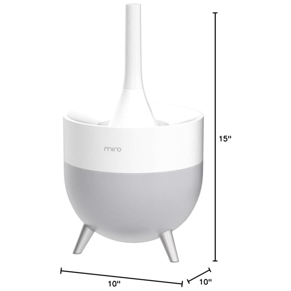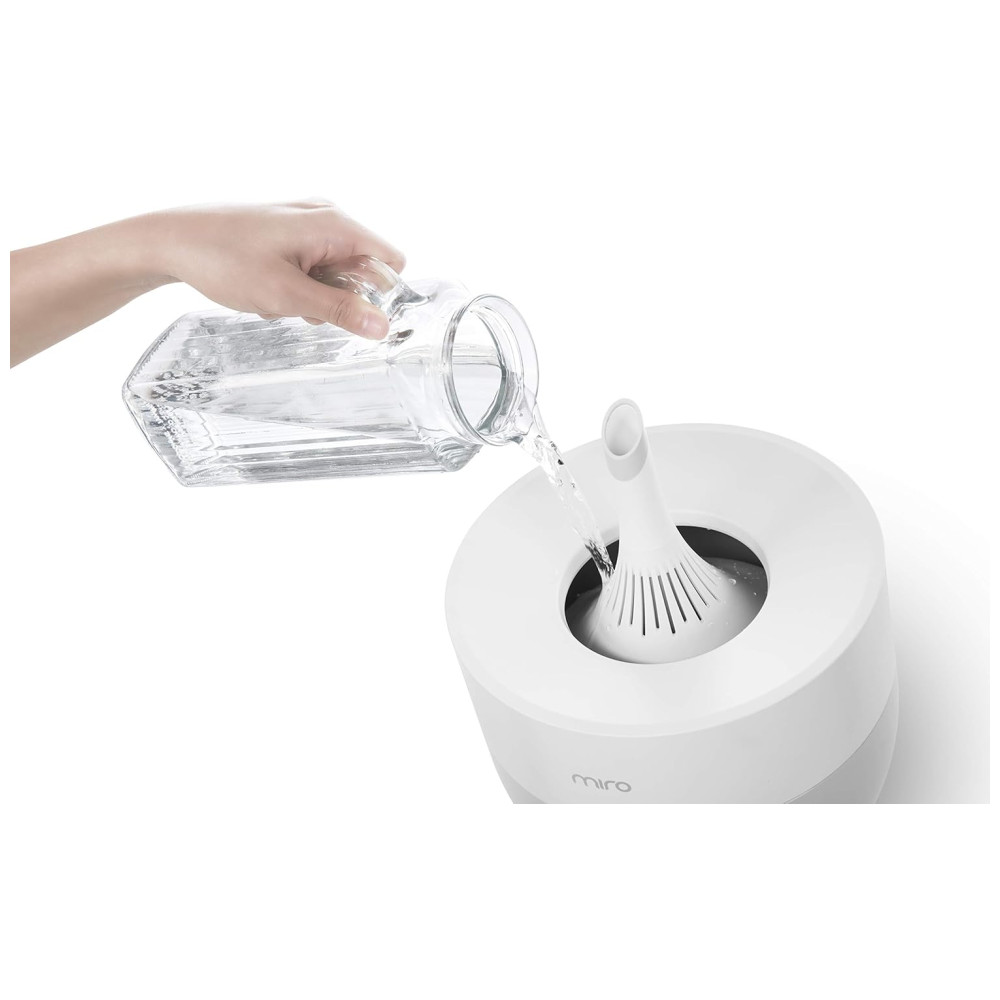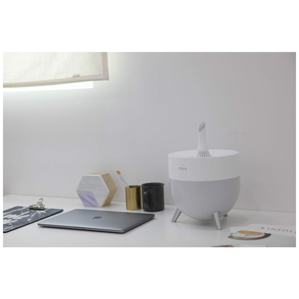 O motor criador de névoa ultrassônico de 4 geração do Miro permite 8 horas de operação contínua com potência máxima e mais de 24 horas com potência mínima. Cobertura máxima de 55 metros quadrados.