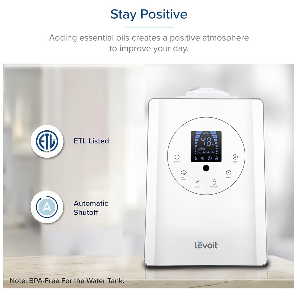 Umidificador Evaporador Elétrico 6 L alcance de 70 m2 com controle remoto e aromaterapia branco LEVOIT Humidifiers Branco