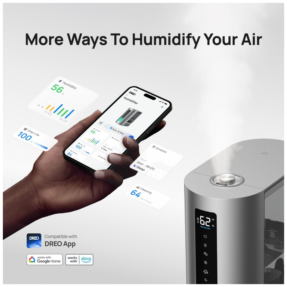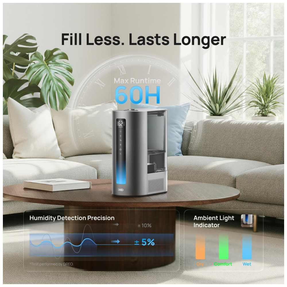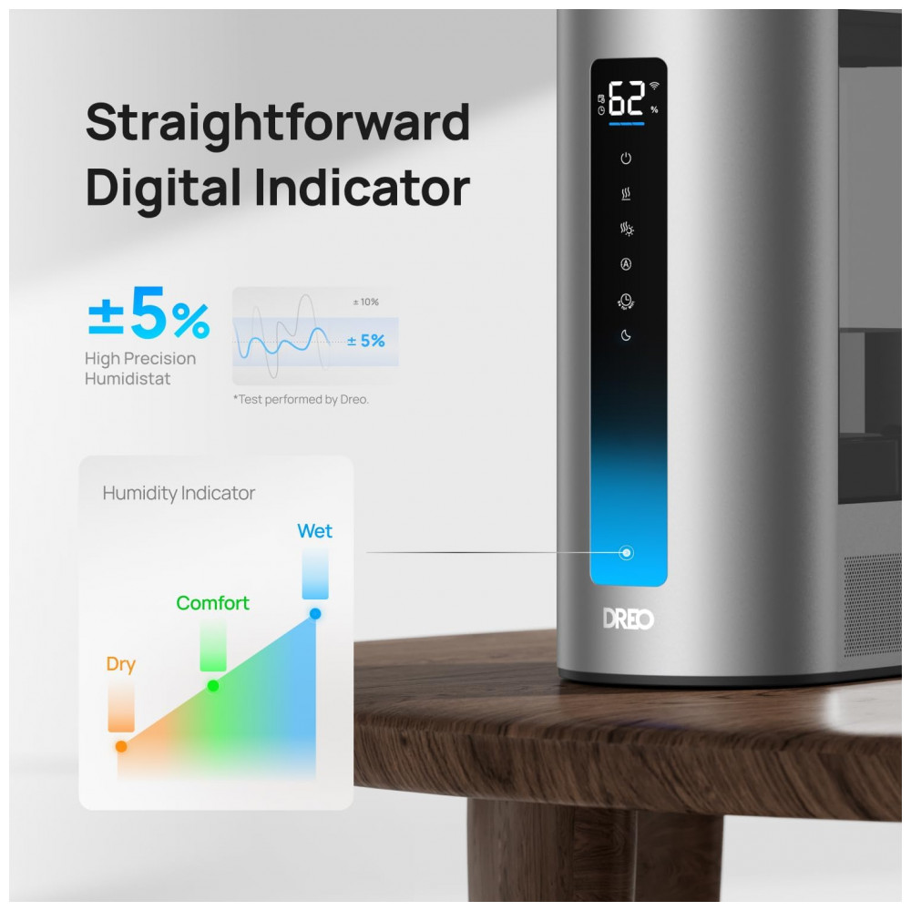 Umidificador Inteligente 6 Litros de Névoa Fria 60 Horas de Ação Dreo HM713S Prata