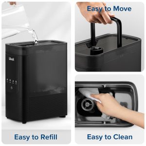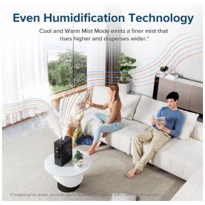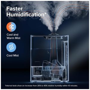 Lidando com sinusite, congestão e inquietação dormir. Nosso umidificador com névoa quente e fria, combinado com um design de duto duplo, oferece umidificação mais rápida e uniforme. Obtenha alívio instantâneo e abrace os confortos da vida
