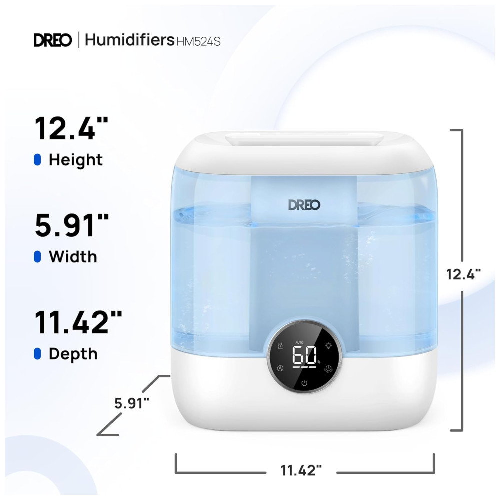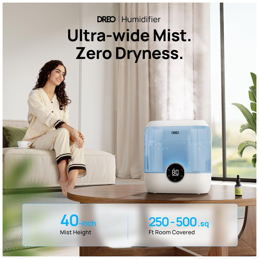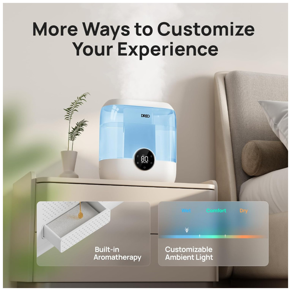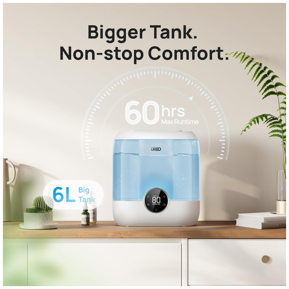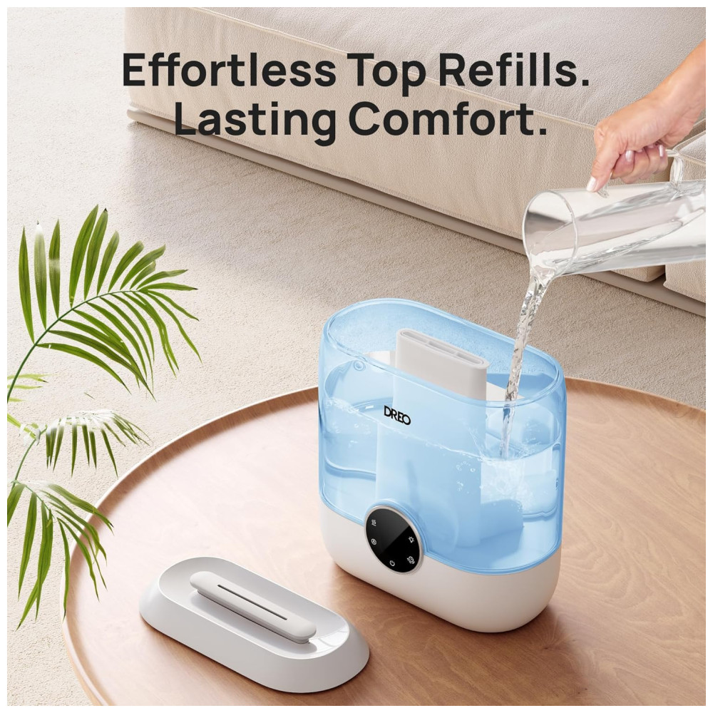 Umidificador Inteligente Dreo para Quarto 6L de Capacidade Design Top Fill Ultrassônico 60 Horas de Autonomia Silencioso Luz Noturna Azul