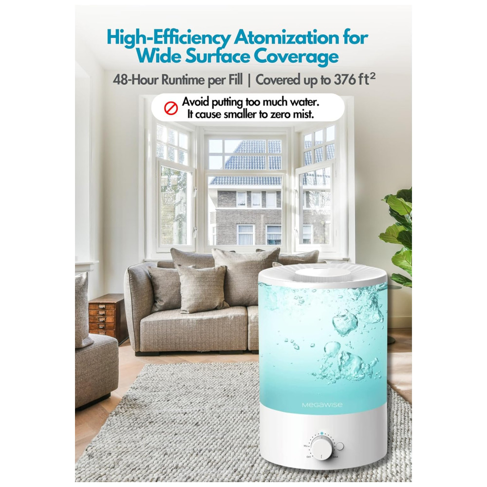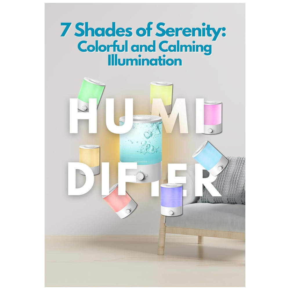 Umidificador MegaWise Topfill 7 Cores com Luz Noturna para Quarto Infantil – 35 Litros Antivazamento Vapor Fino Tanque para Óleos