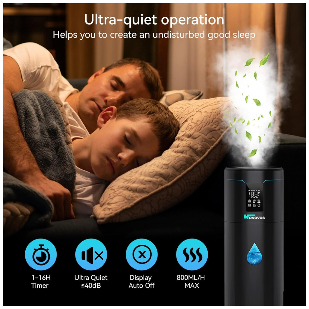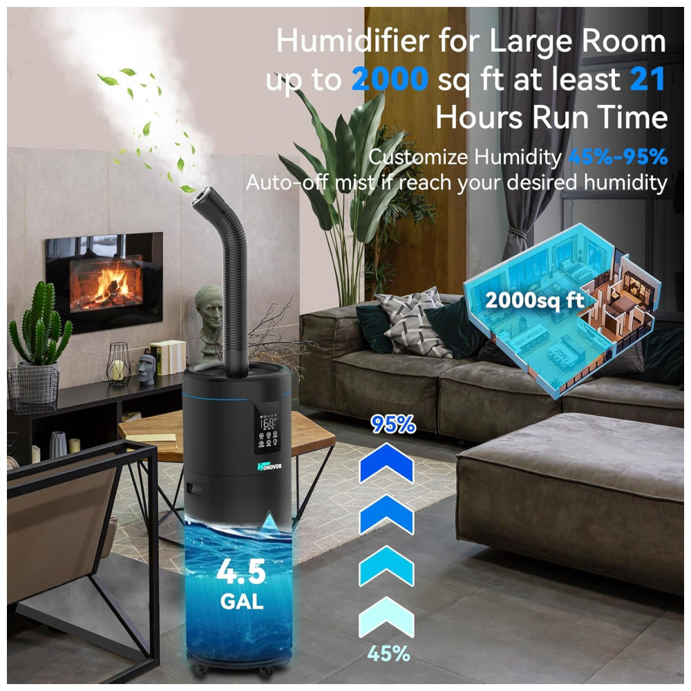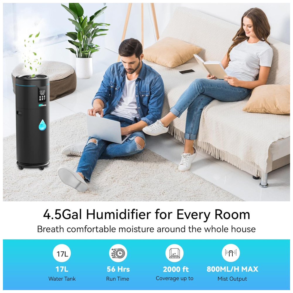 Umidificador para Ambientes Grandes de até 200m² – Capacidade de 17L 4 Velocidades de Névoa Design Antivazamento PretoHonovos