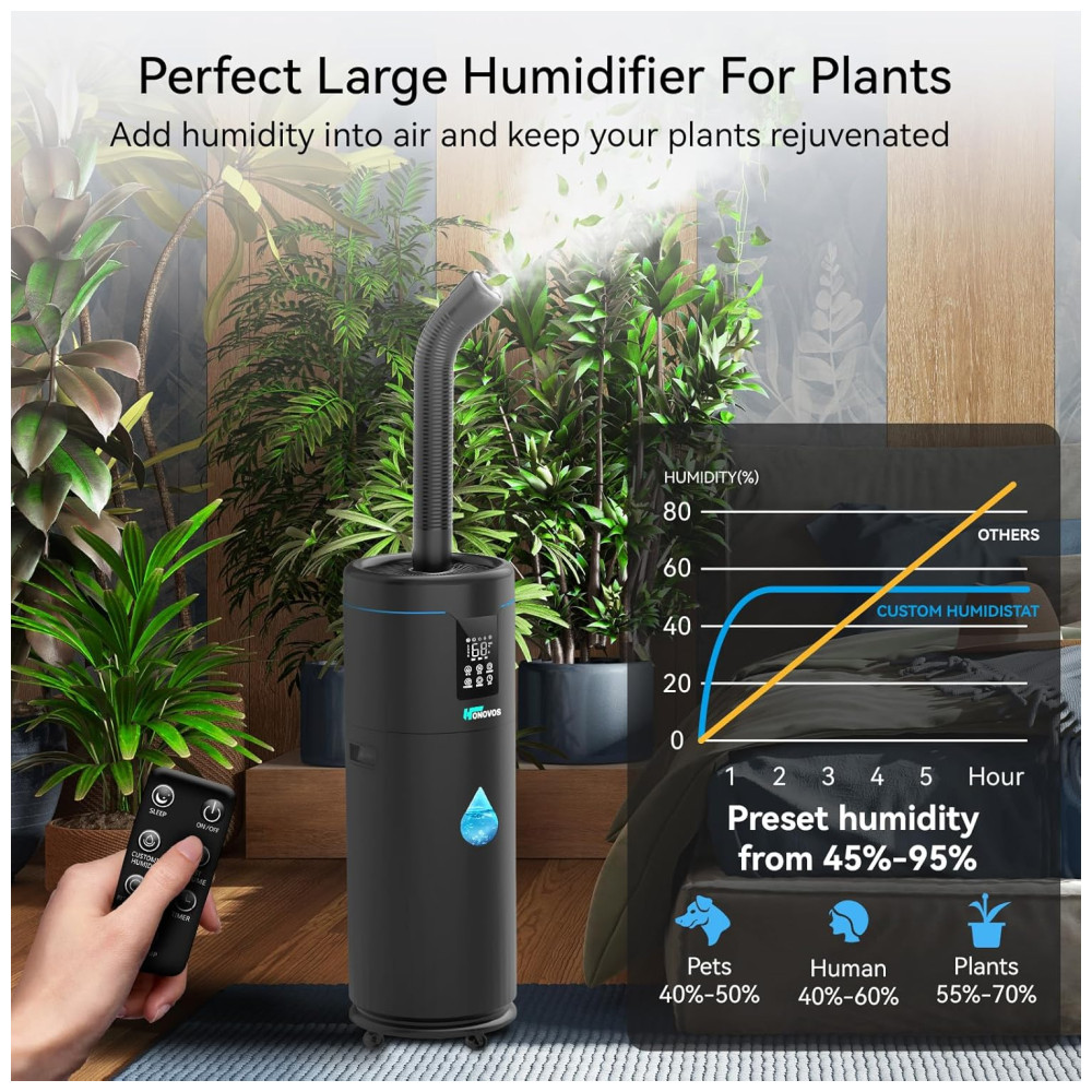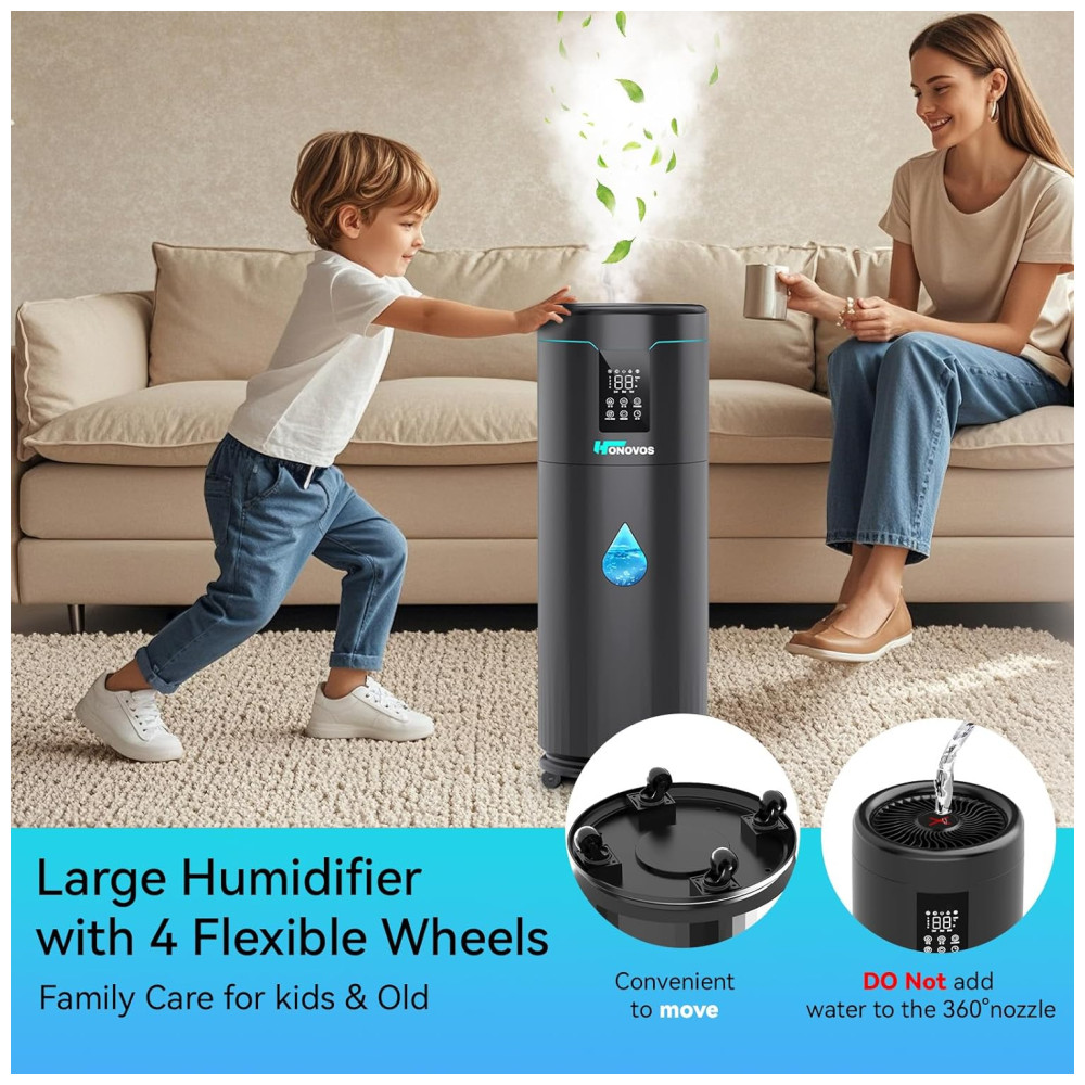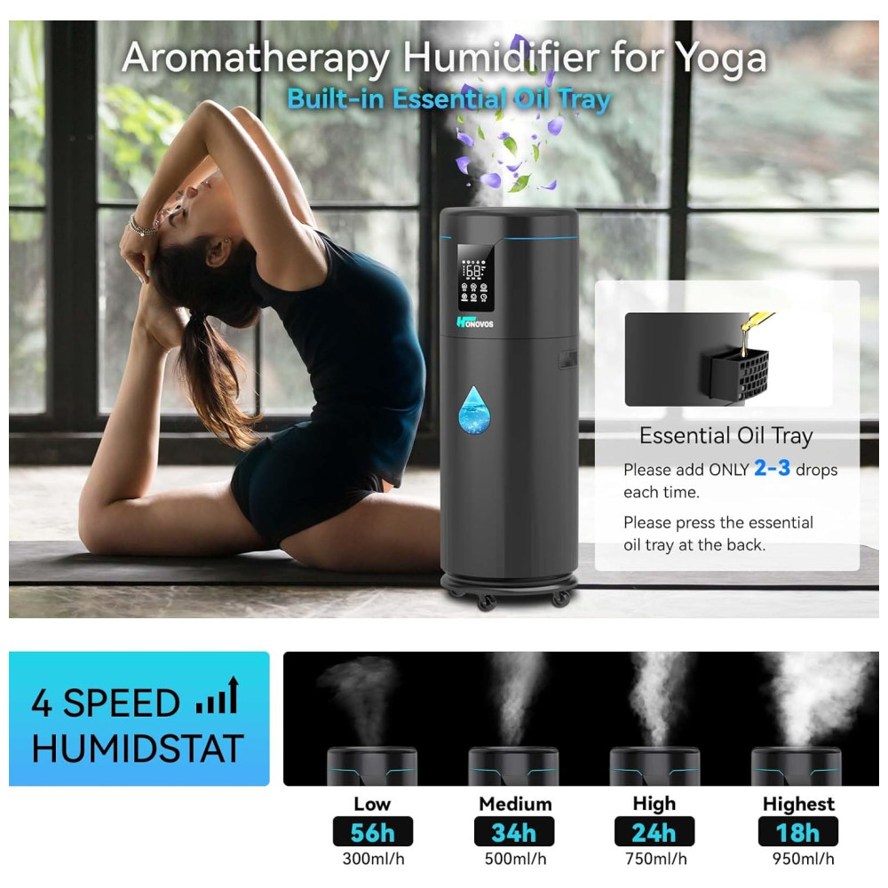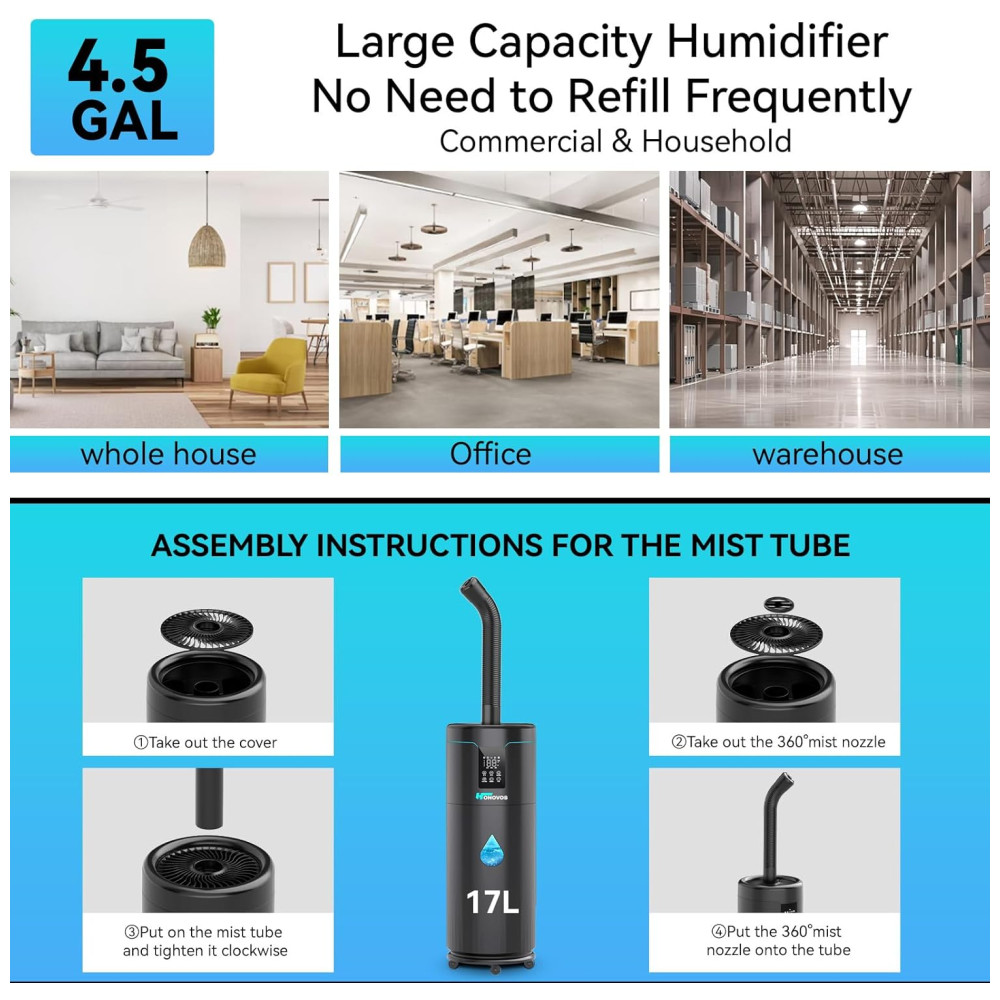 Umidificador para Ambientes Grandes de até 200m² – Capacidade de 17L 4 Velocidades de Névoa Design Antivazamento PretoHonovos